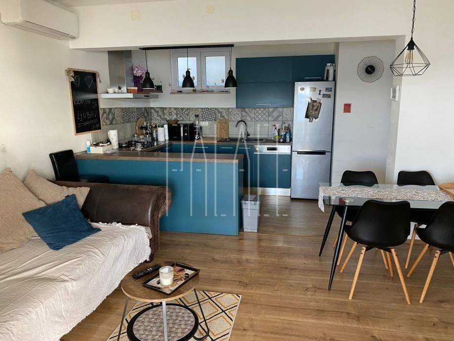 It comprises a kitchen with a living room, two bedrooms, a bathroom, a hallway, a pantry, and the aforementioned terrace. The apartment is equipped with a new kitchen, appliances, and 2 air conditioners.