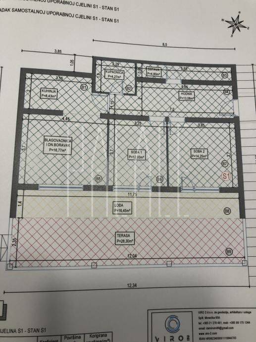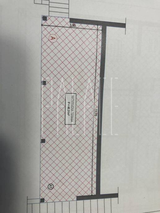 The ground floor consists of a covered terrace, which can be converted into a 46.31m2 apartment, and a fully furnished apartment of 73.63m2, partially renovated in 2018.