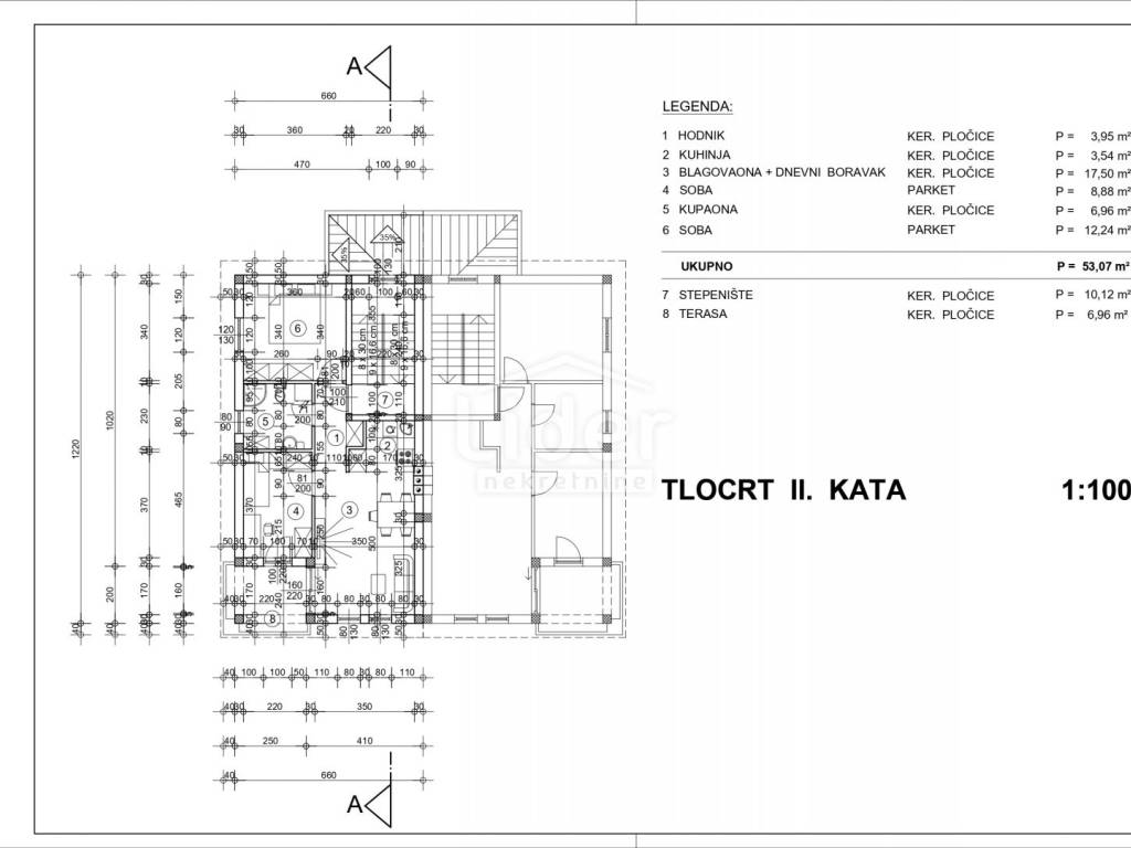 Predviđena gradanja tri stambene jedinice po 53m2 + terasa sa pripadajućim spremištima, P+2