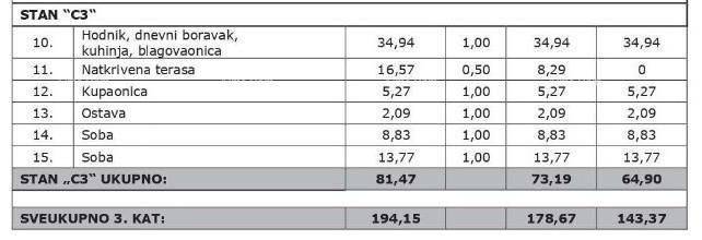 New Construction!!We are selling an apartment on the third floor of a new residential building in Vabriga. Apartment C3, with an area of 81.47 m² (net usable area of 71.60 m²), consists of a kitchen with a living room and dining area, 2 bedrooms, a bathroom, a storage room, and a covered terrace.The apartment includes an additional storage room and a parking space, which are included in the price.Planned move-in date is June 2025.For more information, please contact:Azra +385 91 611 5706 +385 98 420 885 azra@almadominvest.com