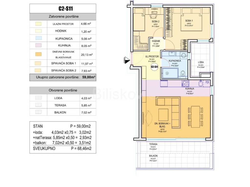 C2-S11 2-bedroom south-east-north 68.46 6,500.00 444,990.00