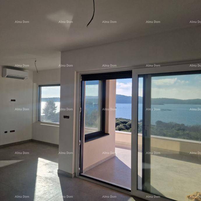 Medulin – Mukalba, PENTHOUSE 104.76 m², NEW BUILD, FIRST ROW TO THE SEAPrime location in one of the most beautiful places in Istria!Planned completion of construction: Spring 2026.Ownership is clean, 1/1.The penthouse is located on the second floor of a smaller residential building with a total of three apartments, in the first construction row to the sea. In front of the building, there is a green zone where construction is not permitted, ensuring a lasting unobstructed view of the sea.Apartment layout:- Master bedroom with en-suite bathroom,- Additional bedroom,- Bathroom,- Open space living room with kitchen,- Balcony with loggia and panoramic view.Area:- Apartment: 82.66 m² net,- Garage: 36.83 m² (accounting for 22.10 m²),- Total net usable area: 104.76 m².Equipment and construction quality:- High-quality PVC joinery with triple-layer 4S glass from Saint-Gobain,- Underfloor heating with water,- Electric blinds,- Lacquered interior doors,- Anti-burglary entrance door to each apartment,- High-quality aluminum entrance door to the building,- Excellent thermal insulation of the facade and roof.The price includes an interior design concept with a decoration booklet and renderings. The building is already in an advanced stage of construction – the joinery has been installed. Completion of the works is expected in Spring 2026.Contact for more information:Azra Valjevac+385 91 611 5706+385 98 420 885azra@almadominvest.com