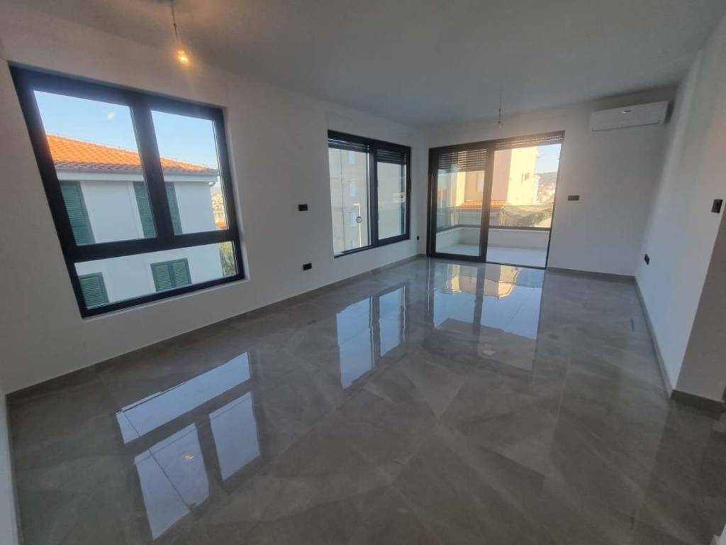 For sale is an attractive apartment located in a newly built residential building in a quiet area of Okrug Gornji. The building consists of only three residential units spread over three floors: basement, ground floor, and first floor.The apartment is situated on a high ground floor which, thanks to its elevated position, has the impression of a first-floor apartment. It consists of a living room, dining area, kitchen, hallway, three bedrooms, and two bathrooms, with a total living area of 80.26 m². From the living room there is access to a 13.98 m² balcony offering a beautiful sea view. It also has one outdoor parking space.The property is equipped with underfloor heating, air-conditioning units in all rooms, electric shutters, high-quality aluminum joinery, modern ceramic tiles, and sanitary fittings, ensuring a high level of comfort and quality of living.The apartment is located in an excellent position, just 150 m from the sea and the nearest beach, and close to all essential amenities for everyday life. The distance to the town of Trogir is 4.5 km, to Split Airport 10 km, while the city center of Split is 33 km away.