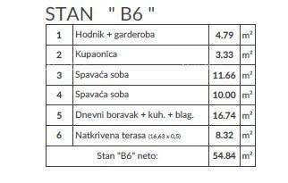 Sale of apartments in a new project, Pula!Residential project in Pula, a building with three floors and 12 residential units.Apartment B6, with an area of 54.84 m2, is located on the 1st floor of the building and consists of: hallway + wardrobe, living room with kitchen and dining area, 2 bedrooms, bathroom, and covered terrace. The apartments will be equipped with inverter air conditioning, underfloor heating in the bathrooms, high-quality ceramics, and flooring.The apartment includes a parking space.Move-in is expected by the end of 2026.For more information, please contact:Info: +385 91 611 57 06 +385 98 420 885 azra@almadominvest.com