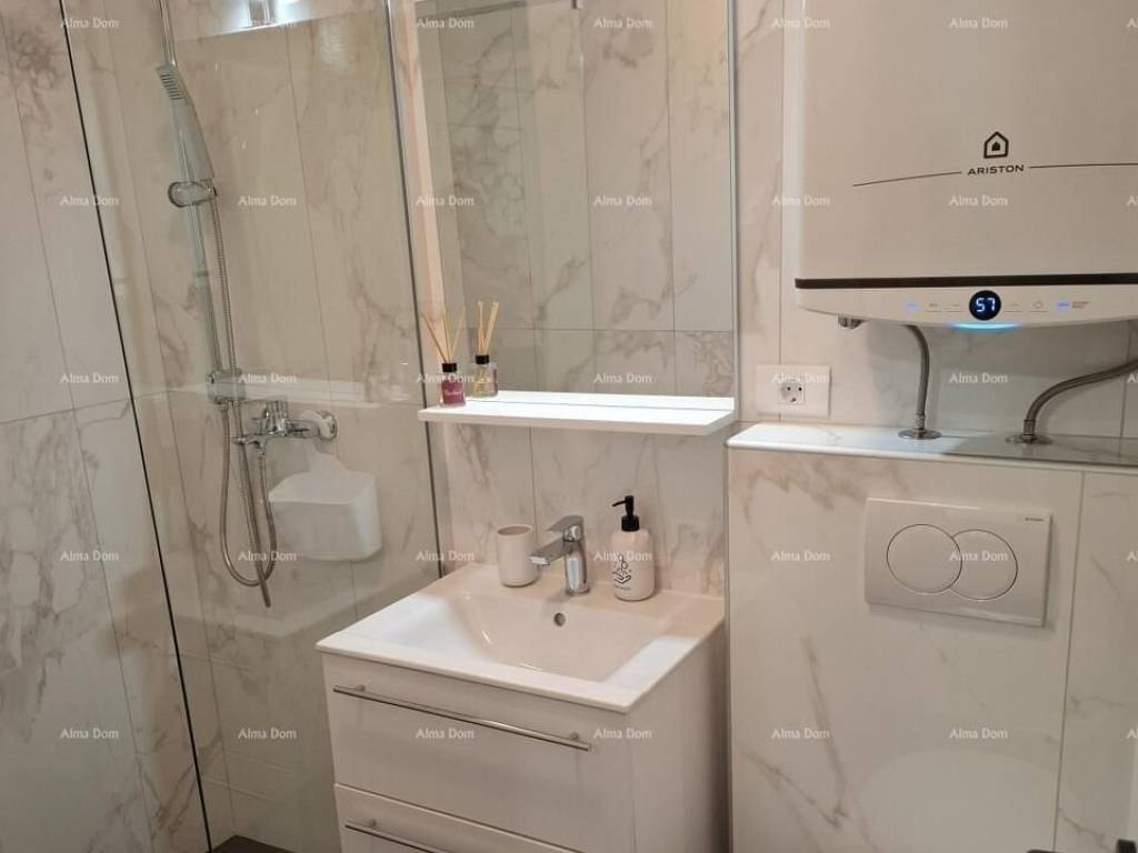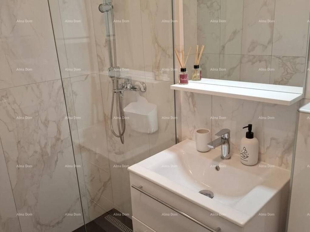 A bright apartment for sale located on the 2nd floor of a residential building in a quiet neighborhood in Umag. The apartment is completely renovated, furnished and ready to move in or continue as a tourist rental. Basement: 4 m².Parking: Large common parking lot in front of the building.Contents and equipment:Renovated bathroom and kitchen.All household appliances are new: oven, refrigerator, washing machine, microwave, ceramic hob.New air conditioning and sofa bed.Glazed veranda with sliding windows.New security entrance door.Sold fully furnished.The apartment is categorized for tourist rental - quick activation of activities is possible.Close to all amenities: bakery, flower shop, hairdresser, Kaufland, Plodine, Lidl, Spar.The location is ideal - only 7 minutes walk to the city center and the beach.For further information, please contact:Azra+385 91 6115706+385 98 420885azra@almadominvest.com