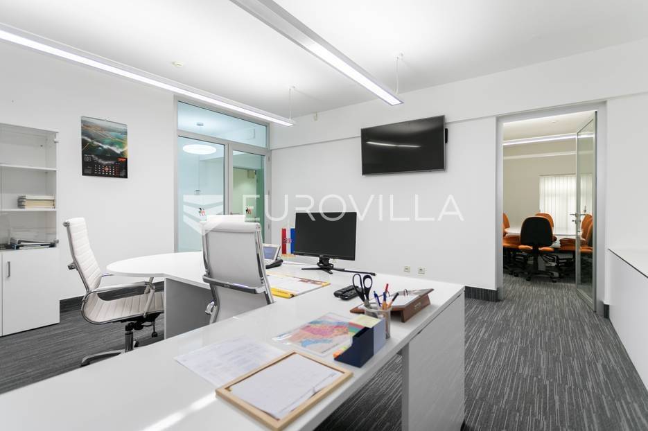 Centar, Medulićeva, blizina Trga Republike Hrvatske, novouređen poslovni prostor u visokom prizemlju vrlo reprezentativne zgrade, adaptirane 2017. godine. Sastoji se od ulaznog stubišta, zajedničkog predprostora i garderobe, 3 uređena ureda, čajne kuhinje, ostave, sanitarnog čvora sa tušem i odvojenog wc-a. Klimatiziran, mramorni podovi, visina stropa 280 cm. Dobre izolacije, moderno opremljen i luksuzno uređen, kompletno namješten, savršen za tihu djelatnost. Prostor je pod video nadzorom, Kolnoa sustav zaštite osigurava alarm i protuprovalna vrata. Zgrada ima osiguranje od potresa, kao i za svaki ured zasebno. Mikrolokacija za posao idealna, ulaz u ured jasno vidljiv i primamljiv prolaznicima, na pješice dostupni svi bitniji sadržaji, a parking zona nalazi se odmah ispred ulaza u zgradu. Mogućnost zakupa garažnog parkirnog mjesta nasuprot zgrade. Cijena zakupa 1500 €+PDV+režije. Ostale informacije na upit.