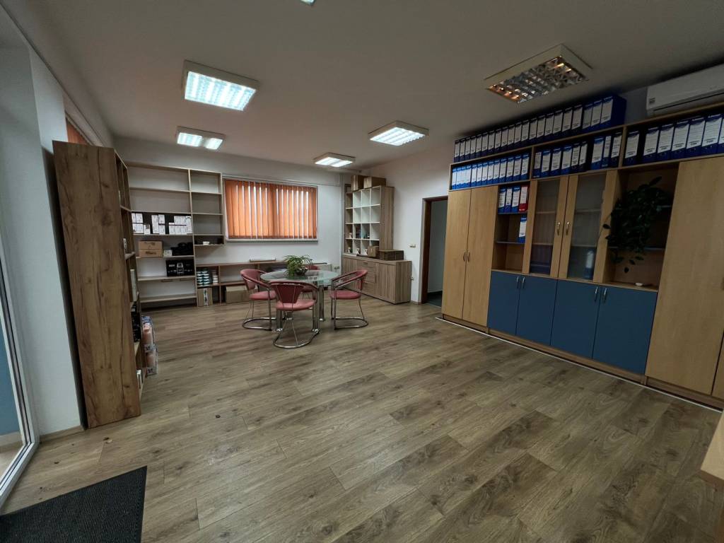 El inmueble consta de un total de 314 m2 de espacio cerrado, que incluye oficinas con una superficie de 141 m2, un pabellón de 146 m2 y un taller/área para limpieza de equipos de 27 m2. Las oficinas están distribuidas en dos plantas: en la planta baja hay una amplia sala para atención a clientes y un núcleo sanitario, mientras que en el piso superior se encuentran una gran sala de conferencias, la oficina principal, una kitchenette y un núcleo sanitario adicional.