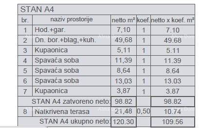 We are selling a beautiful apartment in a modern new building in Štinjan, with a sea view.Apartment A4, with an area of 120.30 m² (net area 109.56 m²), is located on the 2nd floor of residential building A and consists of an entrance hallway, living room, dining area and kitchen, 3 bedrooms, 2 bathrooms, and a covered terrace.The apartment will feature external PVC joinery, an inverter air conditioning unit, laminate flooring in the bedrooms, ceramic tiles in the other rooms, and anti-burglary entrance doors. Heating will be regulated through the inverter air conditioning unit and will have a chimney with the option to connect a wood or pellet stove.The price includes 2 parking spaces of 12.5 m² each (reduced area of 2.5 m² each) and a storage room of 2.75 m² (1.38 m²).For further information, please contact:Azra Valjevac +385 91 611 5706 +385 98 420 885 azra@almadominvest.com