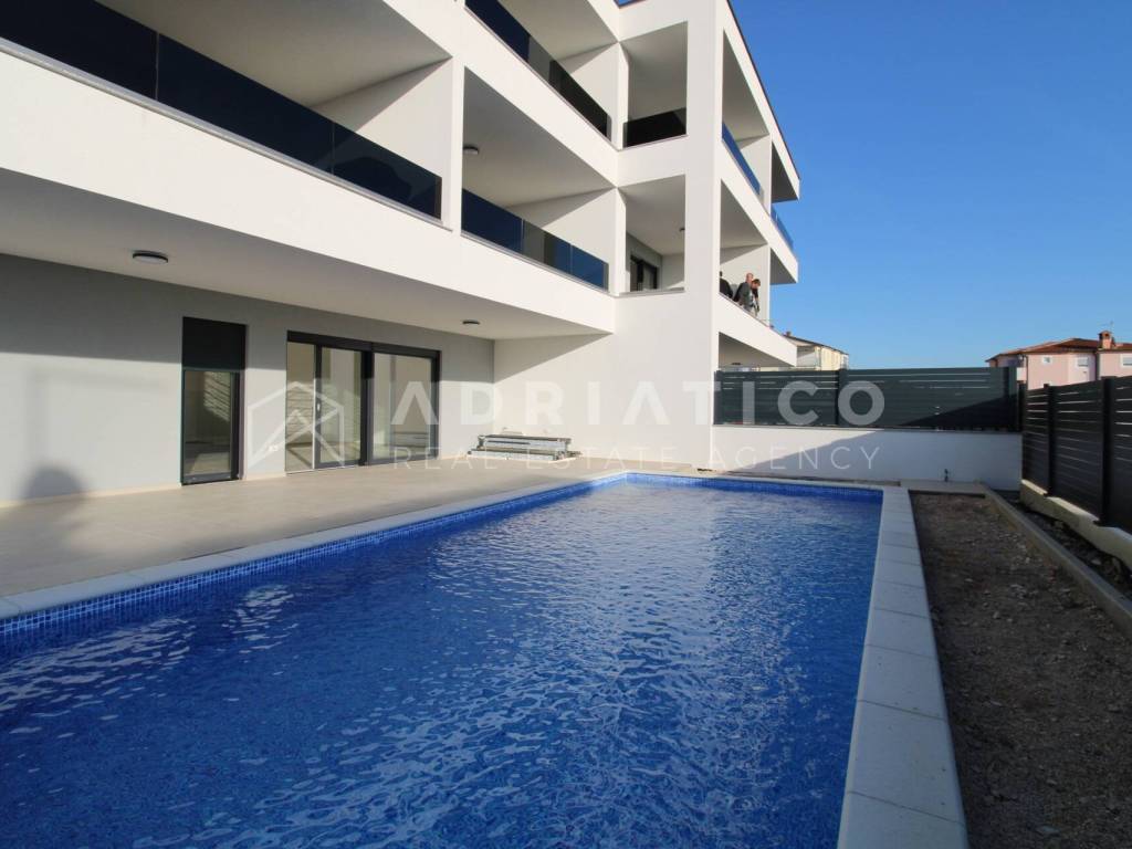 Apartment for sale Novigrad modern three-bedroom apartment with a yard and a swimming pool, near the sea A spacious three-bedroom apartment in Novigrad is for sale, with a total area of 123 m, located on the ground floor of a modern new residential building in a quiet and attractive location. The apartment is located in the immediate vicinity of the sea and the center. The apartment consists of three bedrooms, a functional layout of the space and natural light thanks to its excellent orientation. The property is particularly valuable due to its private yard and terrace, ideal for relaxing, spending time outdoors and socializing throughout the year. Additional amenities include: private pool two private parking spaces air conditioning and underfloor heating in the bathrooms new and high-quality construction peaceful environment with lots of privacy The apartment is surrounded by nature, and at the same time is located just a few minutes from all the important amenities shops, restaurants, beaches and promenades in Novigrad. This property represents an excellent opportunity to buy an apartment by the sea in Istria, either for personal use or as a safe investment with high return potential. For all additional information, please feel free to contact us.