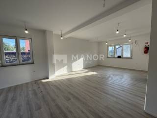 * Poslovni prostor sadrži: - vjetrobran (2,66 m2) - glavnu prostoriju (56,73 m2) - dva toaleta (1,44 m2) - natkrivenu terasu (3,57 m2)