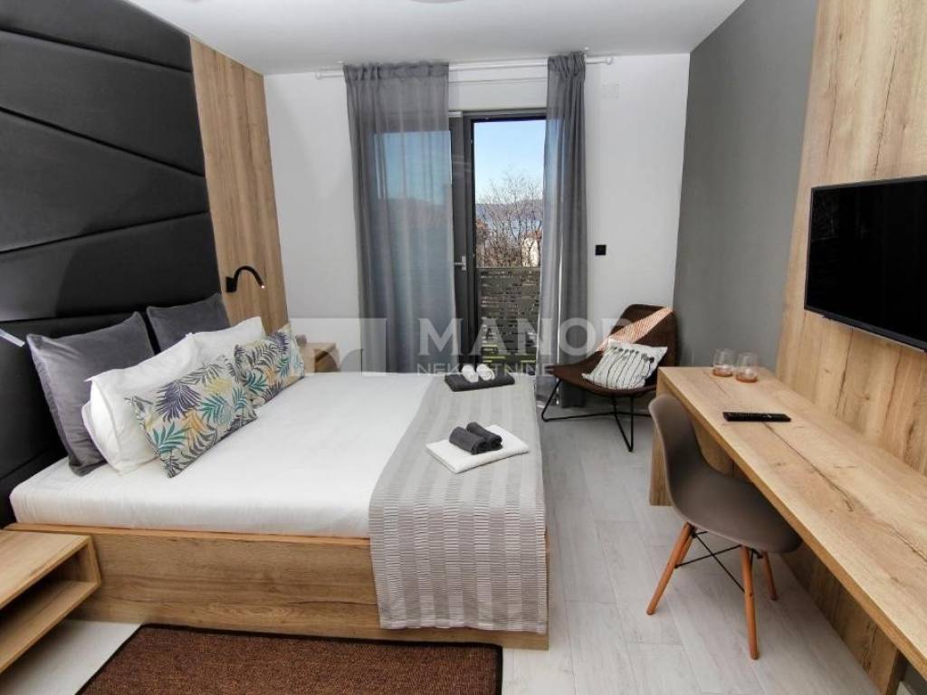 Manor predstavlja boutique hotel s devet elegantnih soba smješten u samom centru Novog Vinodolskog. Svaka je soba opremljena vlastitom kupaonicom. U prizemlju se nalazi ekskluzivni restoran s 40 sjedećih mjesta unutra i dodatnih 50 mjesta na natkrivenoj terasi, a koji pruža izvanredno gastronomsko iskustvo. U suterenu se nalaze sanitarni čvorovi za goste i osoblje, garderoba, skladište i kotlovnica s centralnim solarnim grijanjem. Kombinacija vrhunske gradnje i sofisticiranog dizajna čini ovu nekretninu savršenom prilikom za poslovno ulaganje.