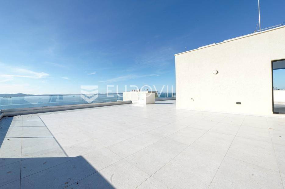Zadar, Kožino, luksuzan trosobni penthouse novogradnji, NKP 207,84 m2.Stan S4 nalazi se na 2. katu zgrade, a sastoji se od ulaznog prostora, tri spavaće sobe, dvije kupaonice, kuhinje, blagovaonice i dnevnog boravka, gostinjskog wc-a, vešeraja, dvije natkrivene terase površine 13,05 m2, 12,90) , lođe (18m2)Stanu pripada krovna terasa na kojoj se nalazi jacuzzi i pruža pogled na more, ostava te dva parkirna mjesta.U izgradnji korišteni vrhunski materijali i oprema ( dizalica toplina za grijanje i hlađenje, ALU stolarija, troslojno staklo, parket i keramika prve klase, protuprovalna vrata, klimatizirano…)Nalazi se na 250 metara udaljenosti od mora i plaže.Kožino je naselje u sastavu grada Zadra, te je dobro prometno povezano s cijelim područjem.Poznato je po šljunčanim i pješčanim plažama koje su okružene mediteranskim vegetacijom.Ova nekretnina nalazi se na izvrsnoj lokaciji te je radi položaja idealna za sve koji žele živjeti u ovom lijepom mjestu pokraj mora, ali i za sve one koji se žele baviti turizmom.Više informacija na upit.