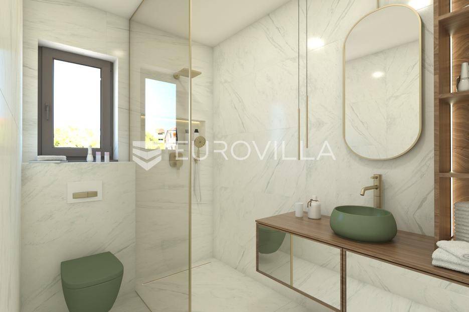 Kaštel Stari, komforan luksuzan trosoban stan od 102,1 m2 u novogradnji, smješten na drugom katu urbane zgrade s liftom i podzemnom garažom.Sastoji se od moderne kuhinje visokog standarda s blagovaonicom te dnevnog boravka otvorenog tipa (32,7 m2), hodnika, tri komforne spavaće sobe, potpuno opremljene kupaonice te dodatnog WC-a i natkrivene terase na jugoistoku. Ukupne tlocrtne površine 102,1 m2; zatvoreni stambeni dio površine 84,3 m2 te velika natkrivena terasa sa žardinjerama veličine 17,8m2.Orijentacija stana je jug - istok, a velike staklene stijene osiguravaju obilje prirodnog svjetla što doprinosi komforu življenja u ovoj nekretnini.Planirani završetak radova 12/2025. godine.Na prekrasnoj okućnici ugrađen je automatiziran sustav navodnjavanja zelenih površina, te je zasađeno mediteransko odraslo bilje, a zgrada ima i osobu zaduženu za brigu i održavanje prostora i zelenila.Odlična pozicija, u blizini svih sadržaja potrebnih za ugodan život, kao i plaže te šetnica uz more. Izvrsna prometna povezanost i međunarodna Zračna luka Split udaljena je 10 km, a u blizini je i poznata marina za brodove "Kaštela", te izvrsna pristupačna brza cesta.Grad Kaštela, s jednom od najduljih obala u Hrvatskoj, smješten je između dva UNESCO-ova grada, Splita i Trogira. Zahvaljujući izvrsnoj lokaciji, predivnom prirodnom okruženju i bogatoj ponudi sadržaja, predstavlja idealno mjesto za ugodan i kvalitetan život ili godišnji odmor.Visoko kvalitetna gradnja i korištena oprema, izdvajamo neke:postavljene podove, parket i keramičke pločice visoke klaseelektrično podno grijanje s digitalnim upravljanjem postavljeno u kupaonicikompletno opremljena kupaonica (električni bojler za grijanje vode, sanitarije, walk-in tuš u okviru zadanog cjenovnog ranga)ulazna protuprovalna i protupožarna vrataInverter klima uređaj snage 3,5 kW u dnevnom boravku i svim sobamaunutarnja stolarija bijele boje i ravnih, modernih linijavanjska stolarija antracit kombinacija Alu- PVC, s podizno kliznim stijenkamaoluci skriveni u fasadivrhunska toplinska i zvučna izolacija, vanjska fasada 8 cm kamena vunaNekretnina će biti izvedena u rangu A+ energetskog certifikata sukladno standardima.Za više informacija, stojimo Vam na raspolaganju.