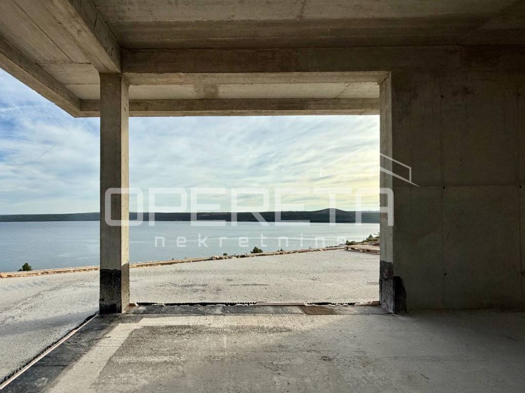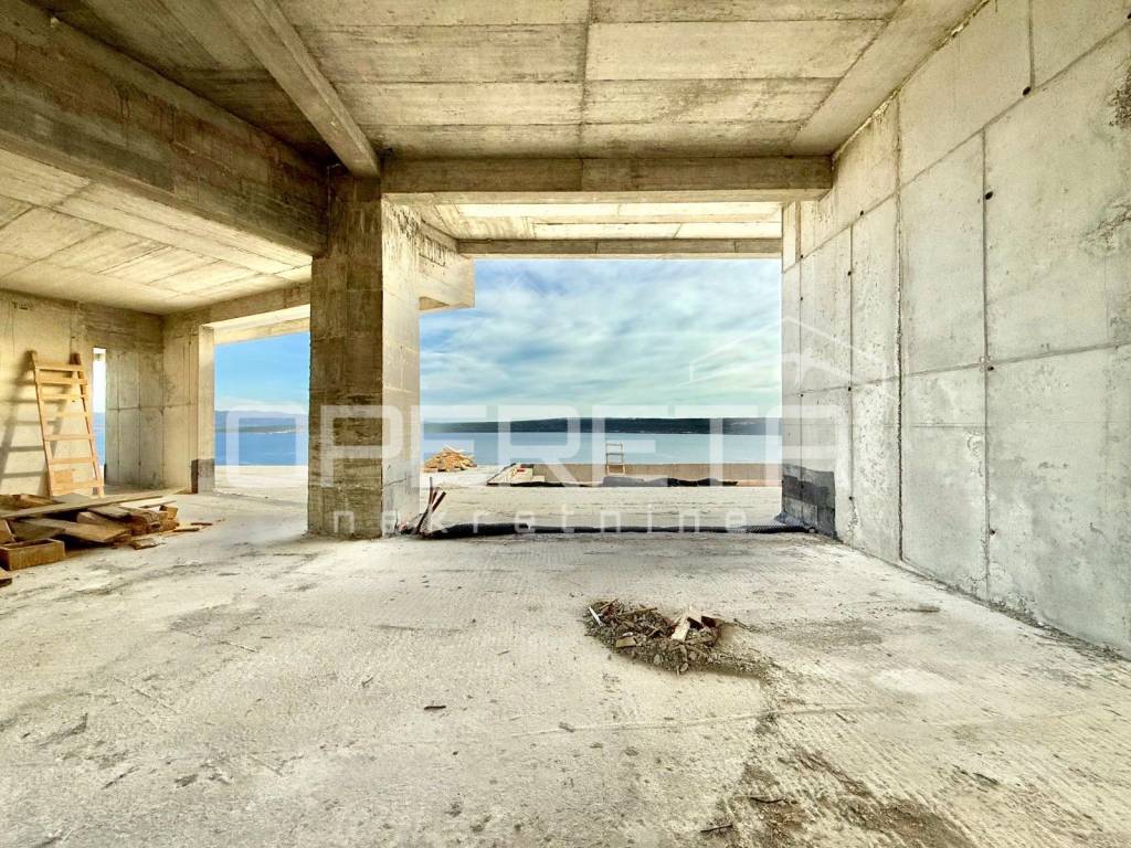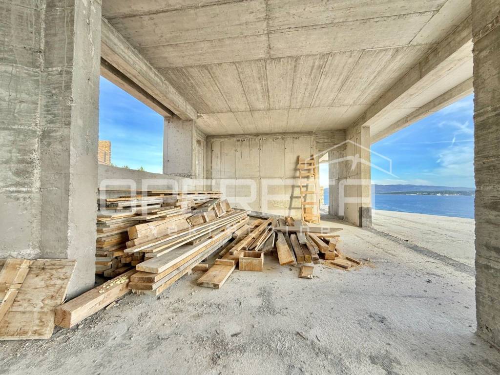 The property includes three bedrooms – one master suite (20.25 m²) and two additional rooms (12 m² – 18 m²). The open-plan living room and kitchen (56 m²) form the central feature of the home. Sea views can be enjoyed from every room. A wellness area is also planned, which can optionally be converted into a fourth bedroom.