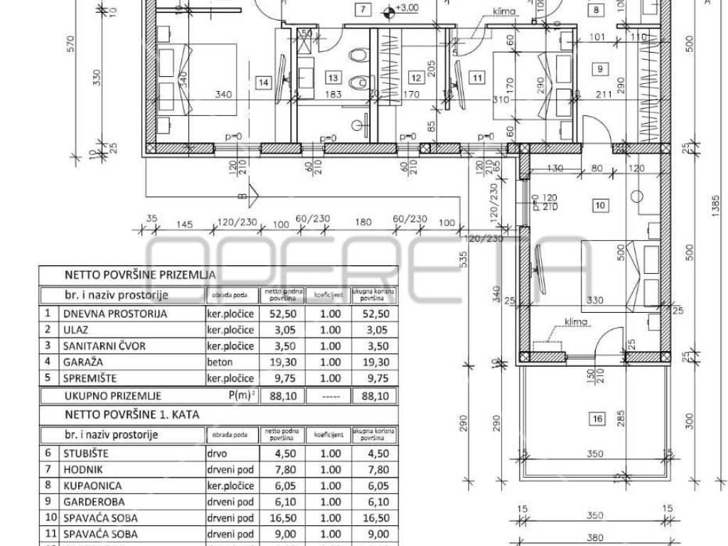 On a plot of land of 666 m2, the villa extends over two floors, with a total net area of ​​167 m2.