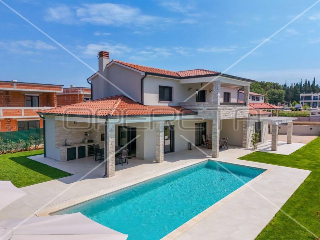 Just 1 km from the center of Poreč, a beautiful luxury villa surrounded by greenery is for sale. The villa was built with high-quality materials in cooperation with well-known architects and designers.