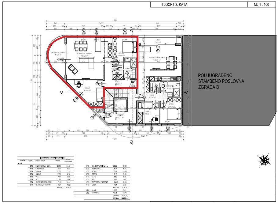A modern apartment is available in a residential-commercial building located in the very center of Tar, in an attractive and peaceful location with a beautiful sea view. The apartment is part of a high-quality new development consisting of 12 residential units and two commercial spaces, spread over four floors ground floor and three upper floors.