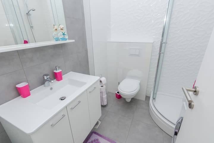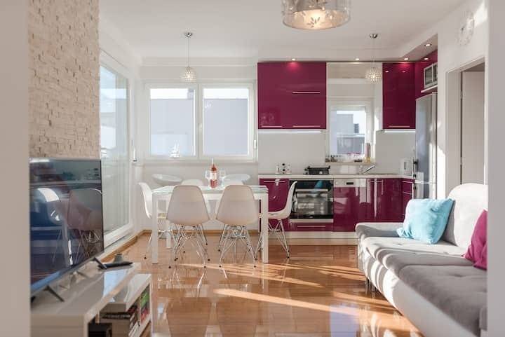 Apartmanu pripadaju dva parkirna mjest, kao i spremište u prizemlju zgrade.