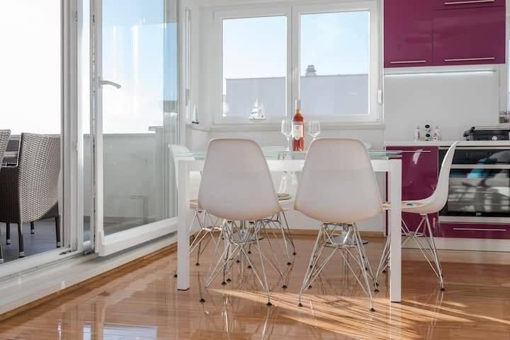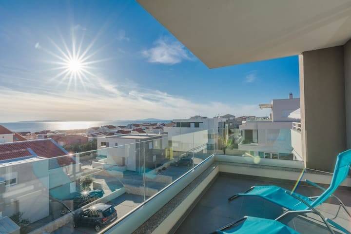Prodaje se prekrasan četverosoban apartman na 2. katu kvalitetne stambene zgrade na top lokaciji u Novalji, Samorašnji put.