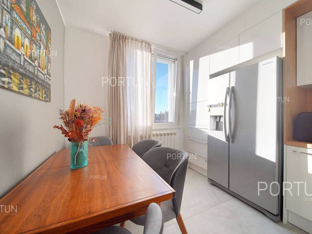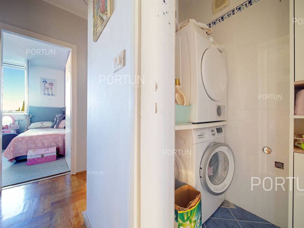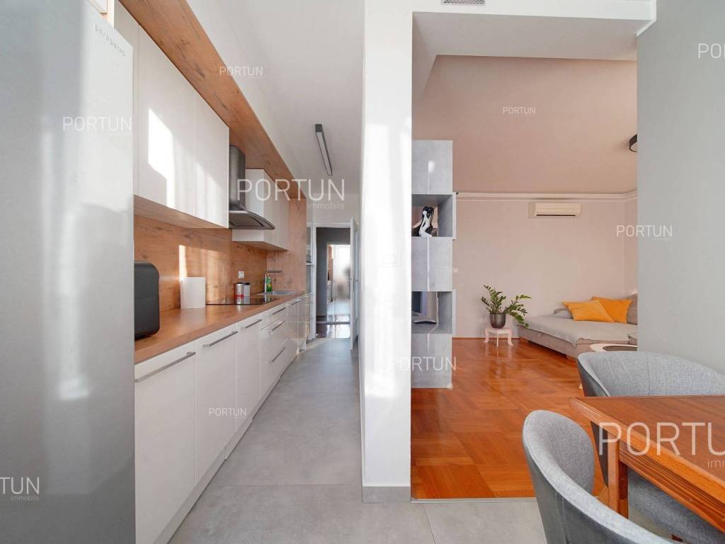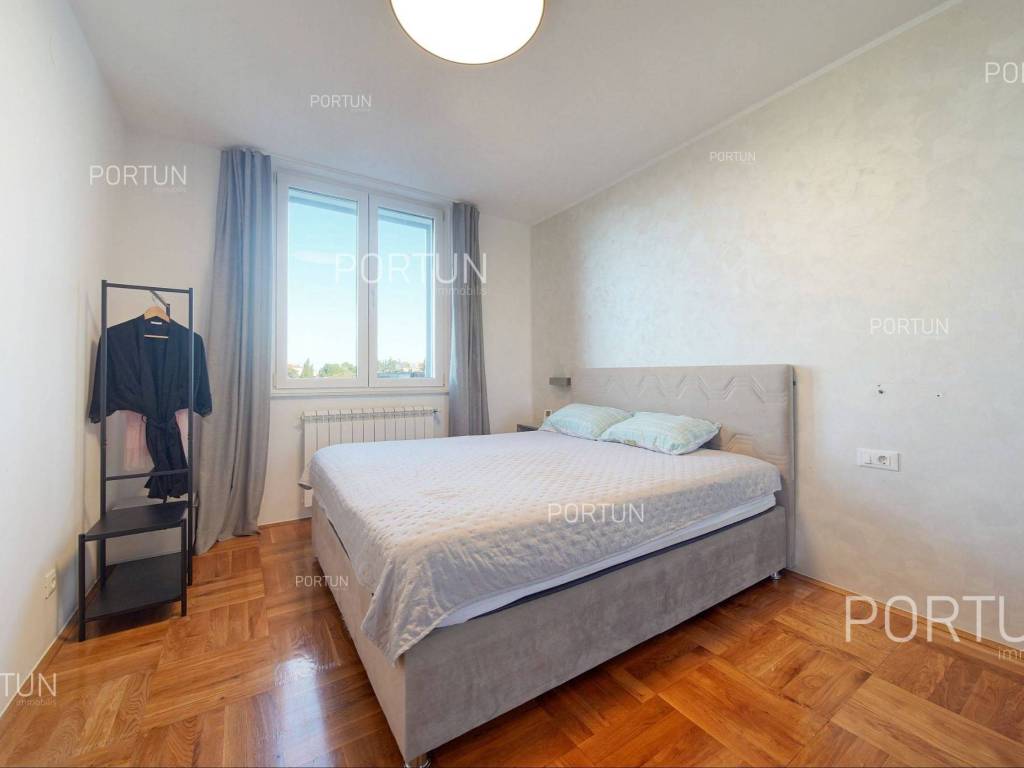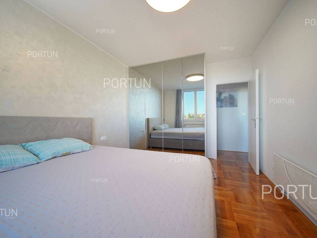 Apartment in Rovinj in an excellent location between Juraj Dobrila Elementary School and the city center stands out for its modern urban style, functional layout, and plenty of natural light. Recently renovated and fully equipped, this apartment offers warmth and comfort perfectly suited to modern living.This apartment of 76 m2 is located on the fourth floor of a building with five floors and an attic. It features an open-plan living room, kitchen, and dining area, two bedrooms, and a bathroom. All furniture is included in the price, with the option to purchase without furniture if desired.The building includes 11 apartments and was constructed with high-quality insulation (8 cm styrofoam + 20 cm brick). The apartment was thoroughly renovated in 2020 and features parquet floors and premium ceramic tiles that add elegance to the space.The apartment faces southeast and enjoys abundant natural light. It comes with a storage room of 2.91 m2 on the ground floor and an exclusive parking space. It is equipped with central electric heating, air conditioning, and PVC joinery with double glazing.Located close to all essential amenities the sea and Lone Bay are just 1,000 m away, while schools, shops, and cafés are within 200 m. The Zlatni Rt Park Forest, kindergarten, and sports facilities are just a few minutes walk away. Its prime location makes this apartment ideal for a family or couple seeking comfort near the town center.If you are looking for a modern apartment in Rovinj with a great location and quality renovation, dont miss this opportunity. For more information or a viewing, contact us Portun Immobilis.Distances from the propertyRovinj Center | 600 mSea | Cove Lone 1000 m Services | Food store 230 m - Cafe or bar 160 m - Inn or restaurant 300 m - Elementary School 140 m - Kindergarten 900 m - Health center 450 m - Pharmacy 450 m Sports and fun | Soccer field 400 m - Basketball court 800 m - Forrestal park Punta Corrente 1,5 km Nearby towns | Bale 13 km - Kanfanar 17 km Traffic | Highway entry Kanfanar 15 km - Pula Airport 38,5 km Attractions | Special ornithological reserve Palud 9 km Parking spaces and particles Particles registered in the land register | Storage space on the ground floor 2,91 m2 Particles for exclusive use | Parking spaceAbout the buildingThe apartment is located in a multi-apartment building which stretches through ground floor, five above-ground floors and loft. The entrance to the building is on the ground floor level, from the northwest side, and vertical communication takes place via an internal staircase. The basic architectural characteristics of this well-maintained apartment building are: 11 Flats External walls | Styrofoam insulation 8 cm + Block brick wall 20 cm Concrete slab floors Roof | Pitched roof covered with clay tiles Built in 1980 Thoroughly renovated 2020 (Apartment)Furniture and equipmentFurniture | All furniture is included in the priceEquipment | ParlaphoneJoinery | PVC joinery with double glazing - Aluminum shutters - Mosquito screens - Anti-burglary entry door - Classic interior doorsHeating and cooling | Central heating - electric - Air conditioning - Radiators - Electric boilerFlooring | Top quality ceramic tiles - ParquetServices Connection to the power grid with its own meter Private connection to the water supply network Connection to the sewage system Optical Internet Paved public access roadDocumentationExtracted documents | Building permit - Usage permissionArea calculationThe area of the apartment (76,00 m2) includes the areas of these spaces:Living area (Fourth floor) = 73,09 m2*Storages, sheds, garages and other areas that are not used for residential purposes (Ground floor) = 2,91 m2**Areas are calculated with coefficient c= 1,00Data source = Unofficial measurment of the space