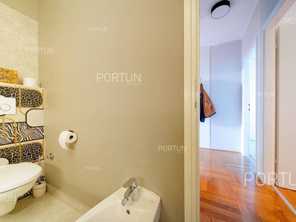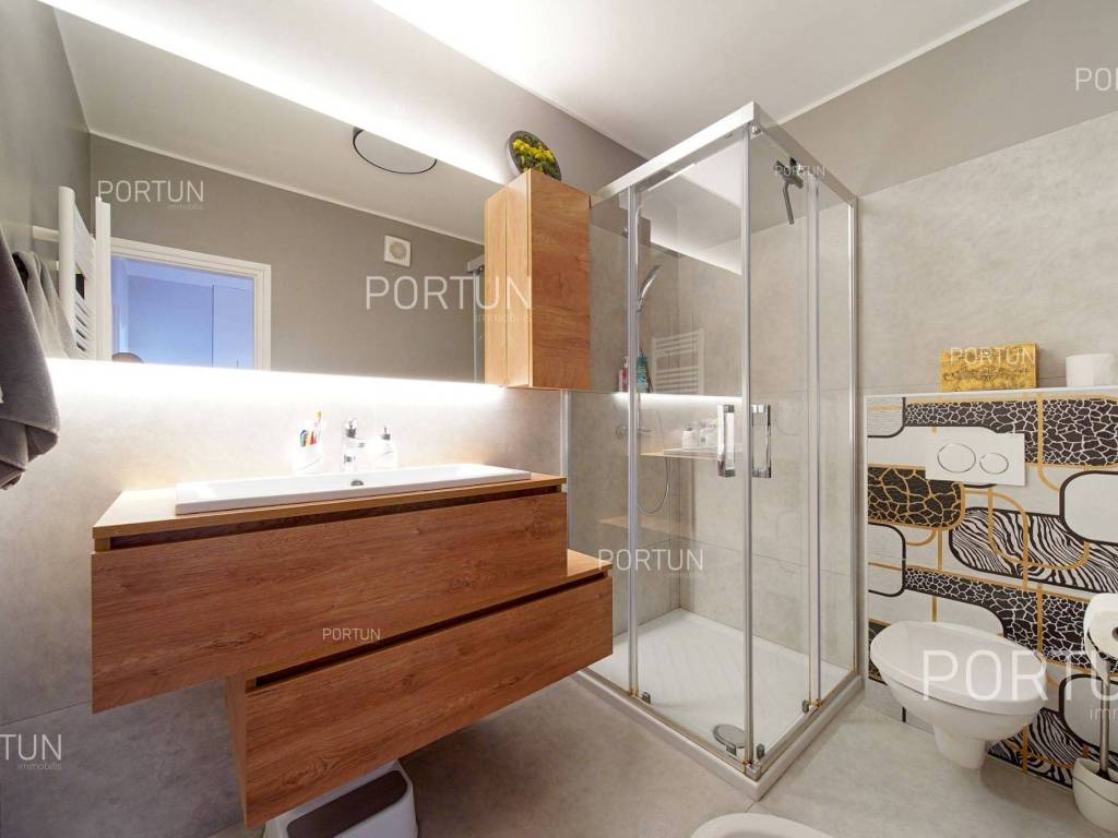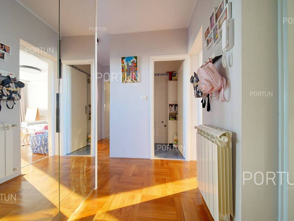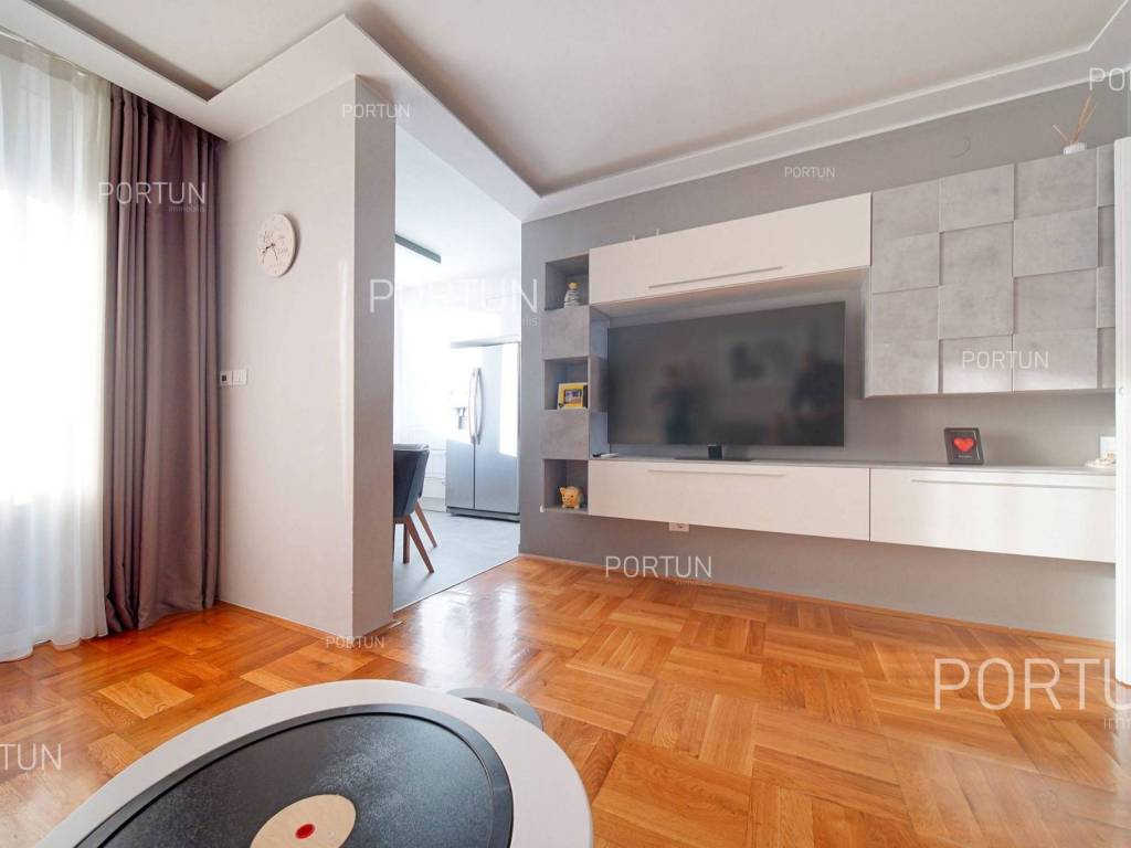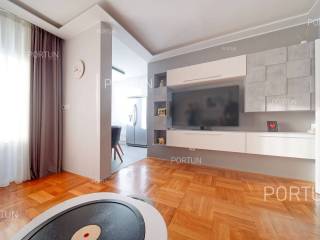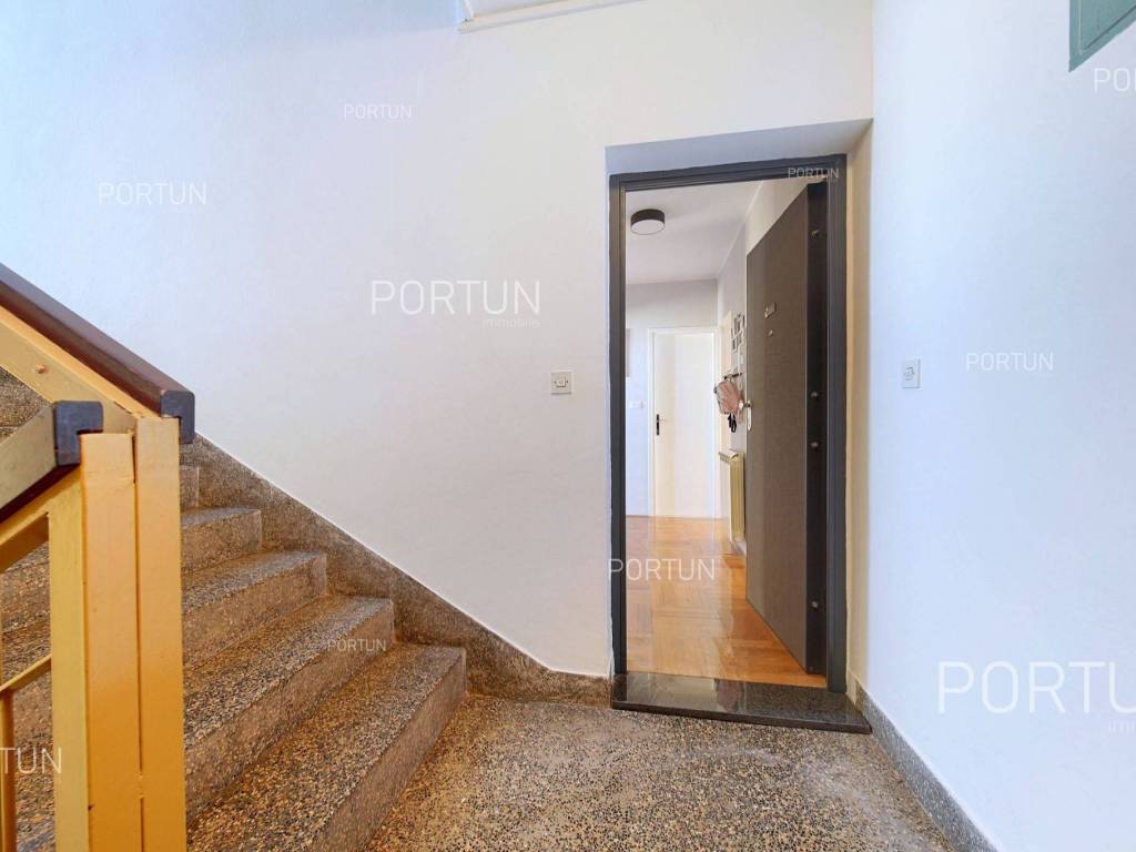 Apartment in Rovinj in an excellent location between Juraj Dobrila Elementary School and the city center stands out for its modern urban style, functional layout, and plenty of natural light. Recently renovated and fully equipped, this apartment offers warmth and comfort perfectly suited to modern living.This apartment of 76 m2 is located on the fourth floor of a building with five floors and an attic. It features an open-plan living room, kitchen, and dining area, two bedrooms, and a bathroom. All furniture is included in the price, with the option to purchase without furniture if desired.The building includes 11 apartments and was constructed with high-quality insulation (8 cm styrofoam + 20 cm brick). The apartment was thoroughly renovated in 2020 and features parquet floors and premium ceramic tiles that add elegance to the space.The apartment faces southeast and enjoys abundant natural light. It comes with a storage room of 2.91 m2 on the ground floor and an exclusive parking space. It is equipped with central electric heating, air conditioning, and PVC joinery with double glazing.Located close to all essential amenities the sea and Lone Bay are just 1,000 m away, while schools, shops, and cafés are within 200 m. The Zlatni Rt Park Forest, kindergarten, and sports facilities are just a few minutes walk away. Its prime location makes this apartment ideal for a family or couple seeking comfort near the town center.If you are looking for a modern apartment in Rovinj with a great location and quality renovation, dont miss this opportunity. For more information or a viewing, contact us Portun Immobilis.Distances from the propertyRovinj Center | 600 mSea | Cove Lone 1000 m Services | Food store 230 m - Cafe or bar 160 m - Inn or restaurant 300 m - Elementary School 140 m - Kindergarten 900 m - Health center 450 m - Pharmacy 450 m Sports and fun | Soccer field 400 m - Basketball court 800 m - Forrestal park Punta Corrente 1,5 km Nearby towns | Bale 13 km - Kanfanar 17 km Traffic | Highway entry Kanfanar 15 km - Pula Airport 38,5 km Attractions | Special ornithological reserve Palud 9 km Parking spaces and particles Particles registered in the land register | Storage space on the ground floor 2,91 m2 Particles for exclusive use | Parking spaceAbout the buildingThe apartment is located in a multi-apartment building which stretches through ground floor, five above-ground floors and loft. The entrance to the building is on the ground floor level, from the northwest side, and vertical communication takes place via an internal staircase. The basic architectural characteristics of this well-maintained apartment building are: 11 Flats External walls | Styrofoam insulation 8 cm + Block brick wall 20 cm Concrete slab floors Roof | Pitched roof covered with clay tiles Built in 1980 Thoroughly renovated 2020 (Apartment)Furniture and equipmentFurniture | All furniture is included in the priceEquipment | ParlaphoneJoinery | PVC joinery with double glazing - Aluminum shutters - Mosquito screens - Anti-burglary entry door - Classic interior doorsHeating and cooling | Central heating - electric - Air conditioning - Radiators - Electric boilerFlooring | Top quality ceramic tiles - ParquetServices Connection to the power grid with its own meter Private connection to the water supply network Connection to the sewage system Optical Internet Paved public access roadDocumentationExtracted documents | Building permit - Usage permissionArea calculationThe area of the apartment (76,00 m2) includes the areas of these spaces:Living area (Fourth floor) = 73,09 m2*Storages, sheds, garages and other areas that are not used for residential purposes (Ground floor) = 2,91 m2**Areas are calculated with coefficient c= 1,00Data source = Unofficial measurment of the space