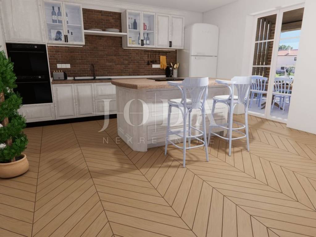 The island of Krk, a beautiful rustic style house with sea view is for sale.  Possibility to purchase in its current condition for €550,000 – with installed windows and doors, completed façade, underfloor heating, and preparation for tiling. A new semi-detached house with a net area of 172.17 m2 (gross 209.15 m2) in a nice location, surrounded by family villas. The house consists of a basement, ground floor and first floor. The basement can be converted into spaces for socializing, a playroom for children, an exercise area or as desired. The ground floor is an open space that combines the living room, kitchen and dining room with exits to the garden and terraces. There is also one bathroom on the ground floor. Upstairs are three comfortable bedrooms and one bathroom. The house has underfloor heating.  The house has a beautiful sea view. There is a swimming pool with a sunbathing area and several parking spaces in the beautifully landscaped garden.  Nice location, ten minutes drive away from the town of Krk or Malinska, and only a few minutes drive away from the first beach.    ID CODE: EI-5446  Josip Šikić, mag.oec Agent s licencom Mob: +385 91 890 4694 Tel: +385 51 403 771 E-mail: info@joda-nekretnine.hr www.joda-nekretnine.hr