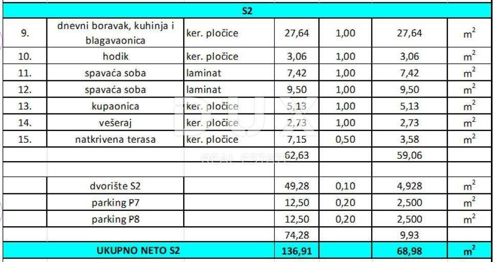 ZADAR, VIR - Elegant ground floor apartment with garden! New construction! S2.   In a modern new building located in a quiet and attractive area, there is this beautiful ground floor apartment with its own garden and two parking spaces. This well-designed space offers two spacious bedrooms, an elegant bathroom, a spacious living room and a functional kitchen with a dining area. Additional practicality is provided by a laundry room, making the apartment ideal for a comfortable and carefree life. The building consists of only four apartments, and each of them has two parking spaces. The construction is taking place according to the highest and most modern standards, with special attention paid to the quality of materials and energy efficiency. All apartments will be equipped with top-quality PVC joinery with electric shutters and luxurious sanitary equipment. Underfloor heating in the bathroom and three air conditioning units ensure optimal temperature throughout the year. The building is surrounded by newly built apartments and modern semi-detached houses with swimming pools, providing a pleasant atmosphere and a high level of privacy. Each apartment has a separate connection to the public water supply, sewage and electricity, which additionally guarantees complete independence and comfort of living. The island of Vir, known for its natural beauty, clean beaches and crystal clear sea, is the perfect destination for anyone looking for a peaceful but eventful life by the sea. With numerous facilities, a restaurant offer and proximity to Zadar, Vir is one of the most desirable places to live and vacation. Don't miss the opportunity to invest in your dream property - contact us for more information and to arrange a viewing!   Dear clients, the agency commission is charged in accordance with the General Terms and Conditions www.dux-nekretnine.hr/opci-uvjeti-poslovanja  ID CODE: 37644  Josip  Šestan Agent s licencom Mob: +385 91 799 6986 Tel: +385 91 480 8808 E-mail: josip@dux-dalmacija.com www.dux-dalmacija.com