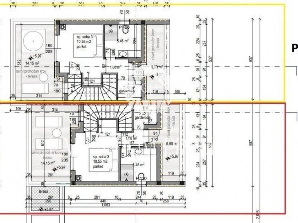 Istria, Porec A modern semi-detached house with svimingpoll l is for sale in a sought-after location in Poreč, close to all amenities necessary for life.House number 4 has a total area of ​​126.34 m2 and extends over three floors.On the ground floor there is an entrance hall, toilet, utility/laundry room, spacious living room with kitchen and dining room according to the open space concept, which has access to a covered terrace and yard.On the first floor there is a hallway, two bedrooms, each with its own bathroom, while one bedroom has a wardrobe/walk-in closet.In the attic there is a master bedroom, a dressing room, a bathroom and two terraces, one with a Jacuzzi connection.The house will be built with quality materials, tiles and floor coverings, block brick walls (25 cm), thermal insulation (12 cm), PVC joinery with triple glazing, blinds and mosquito nets.Underfloor heating and air conditioning in all rooms, and solar panels for additional energy efficiency.There will be two parking spaces in front of the house.The planned completion of the turnkey construction is 06/2027The buyer does not pay property tax.Due to its exceptional position and proximity to the center and all necessary amenities, this property offers the perfect solution for a spacious and functional home or as an investment for tourist purposes.