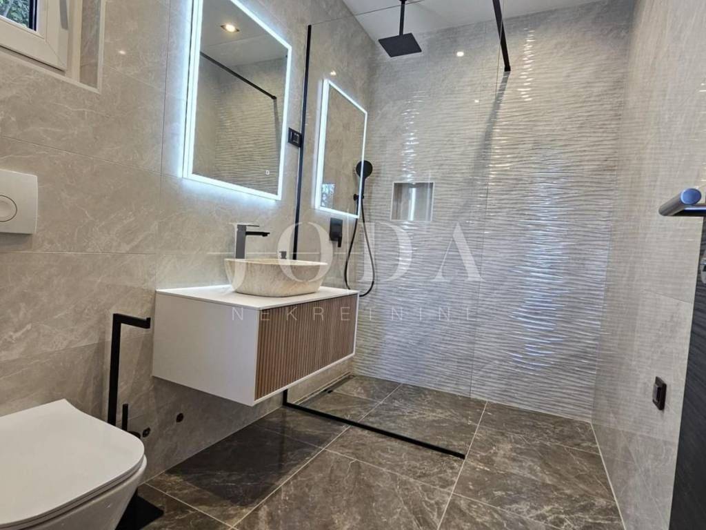Detached, modern detached house with excellent location in the garden, which has a lot of high-quality outdoor space (children's playground, gazebo with barbecue, swimming pool with sunbathing area).  Excellent micro location, 300 meters from the beautiful beach and 5 minutes walk from the town promenade.  Fully fenced and landscaped garden where there is parking (covered and uncovered) for several cars.  The house consists of three floors connected by an internal staircase. The basement is designed as a wellness area with sauna, gym and games room as well as a large storage room and/or wine cellar. The first floor is designed as a large open plan living room, kitchen and dining room connected to a paved terrace where there is a swimming pool and sun terrace. Furthermore, on the first floor there is another bedroom with en-suite bathroom, a guest toilet and a technical room.  On the upper floor there are four bedrooms, each with its own bathroom. All rooms on the first floor and second floor have sea views.  Extremely well built house, fully furnished and equipped. Heating and cooling system with diesel heat, underfloor heating, air conditioning, alarm and video system, heated pool.  The house offers absolute luxury and pleasure, whether for living or for use as a tourist rental.  ID CODE: 6353  Josip Šikić, mag.oec Agent s licencom Mob: +385 91 890 4694 Tel: +385 51 403 771 E-mail: info@joda-nekretnine.hr www.joda-nekretnine.hr