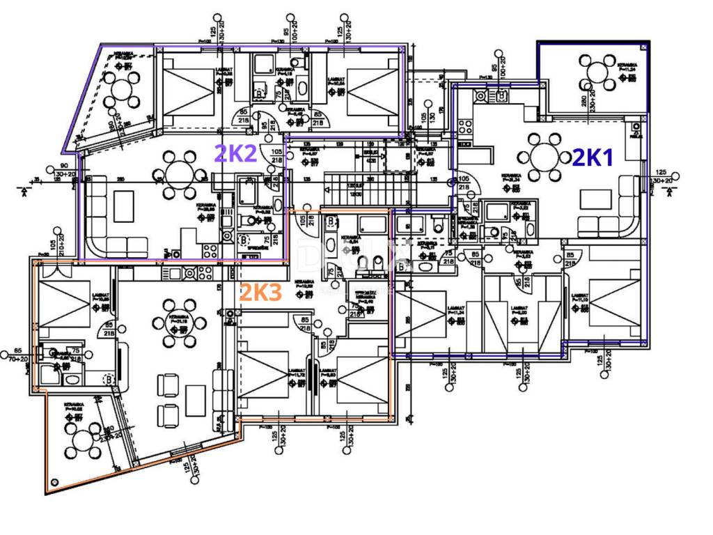 The 2K2 apartment has a total usable area of 78.7 m2 and consists of an open-plan living room, kitchen and dining room, from which there is access to a covered terrace with a beautiful sea view, two bedrooms, two bathrooms, and an additional storage room and hallway.