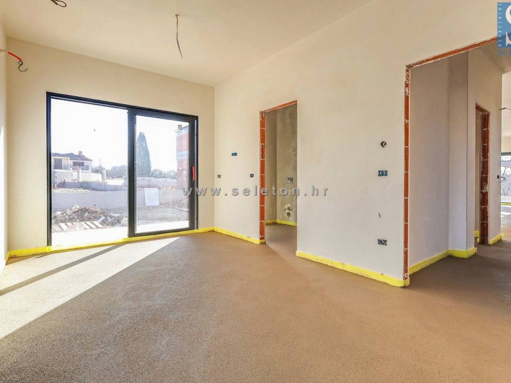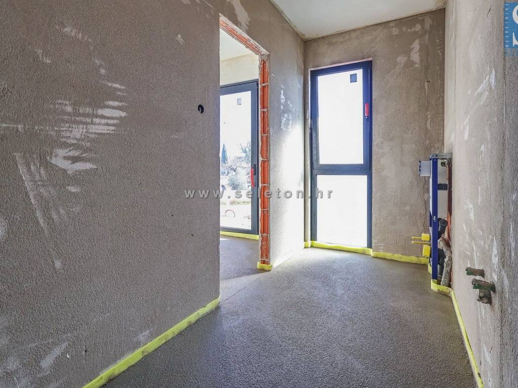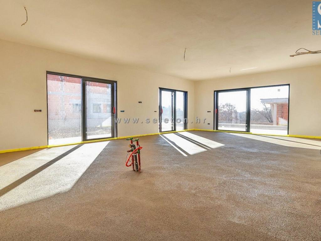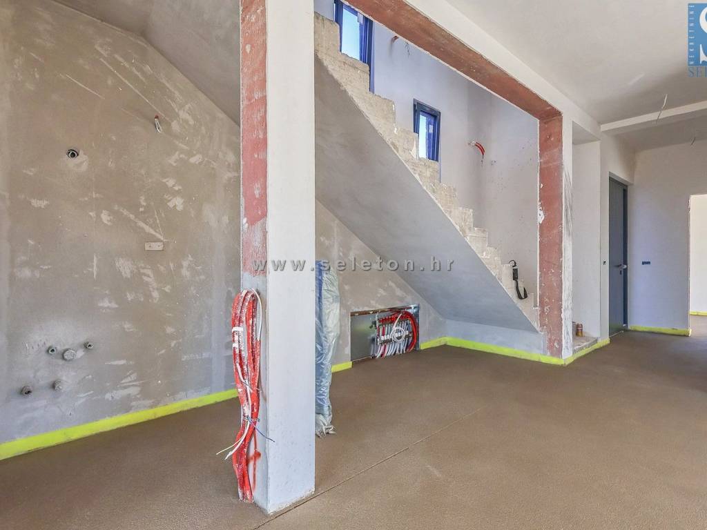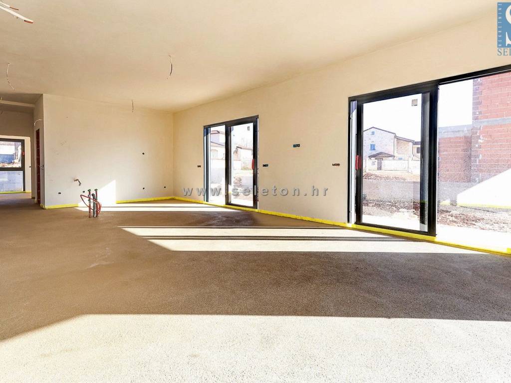 A detached house with a total area of 243 m² is for sale, consists of a living room, kitchen, dining room, terrace, work/technical room, guest toilet and a bedroom with a bathroom on the ground floor of the house, as well as a hallway, three bedrooms with bathrooms and a balcony on the first floor of the house. The house will have a 36 m² swimming pool, a 24 m² summer kitchen and a 5 m² pool storage area, underfloor heating, air conditioning in all bedrooms and in the living room, alarm, automatic garden irrigation, video surveillance and 3 parking spaces. The house is built on a plot of land of 1.080 m², it is located in a village approx. 12 km from the sea/beach and approx. 11 km from Poreč.