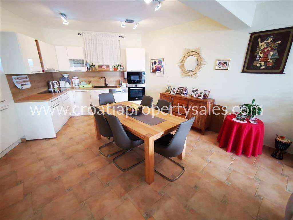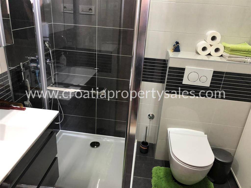 A beautiful three-room apartment with a sea view, located in a small tourist town south of Omis.This 98 m2 apartment is located on the first floor of a smaller building and is fully furnished and equipped with top quality furniture and equipment.It consists of a kitchen with a spacious dining room and a living room with access to a terrace of 19 m2 with a wonderful panoramic view that cannot be blocked, 3 bedrooms, one of which has access to a balcony, and 2 bathrooms.The apartment also has a storage room, one parking space, and shares the swimming pool and lawn around the building with the other tenants.Considering the location, the apartment is ideal for all those who want to be isolated from big crowds and still be close to beautiful beaches, shops and restaurants.
