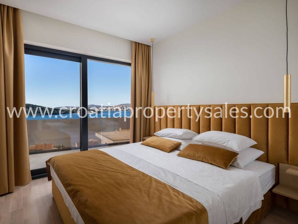 Luxury villa with a beautiful sea view.The villa consists of ground floor and one upper floor.On the ground floor there is a kitchen, living room, wellness room with shower and toilet. Behind the kitchen there is a laundry room with an additional toilet.On the first floor there are four luxuriously equipped rooms with access to the balcony, sea view and an en-suite bathroom.Meals on the terrace with a view are ideal for summer gatherings.The garden is cultivated with Mediterranean plants. Villa has an amazing sea view which you can enjoy from the infinity pool.Restaurants and shops are nearby. Villa is only 32 km away from the airport.