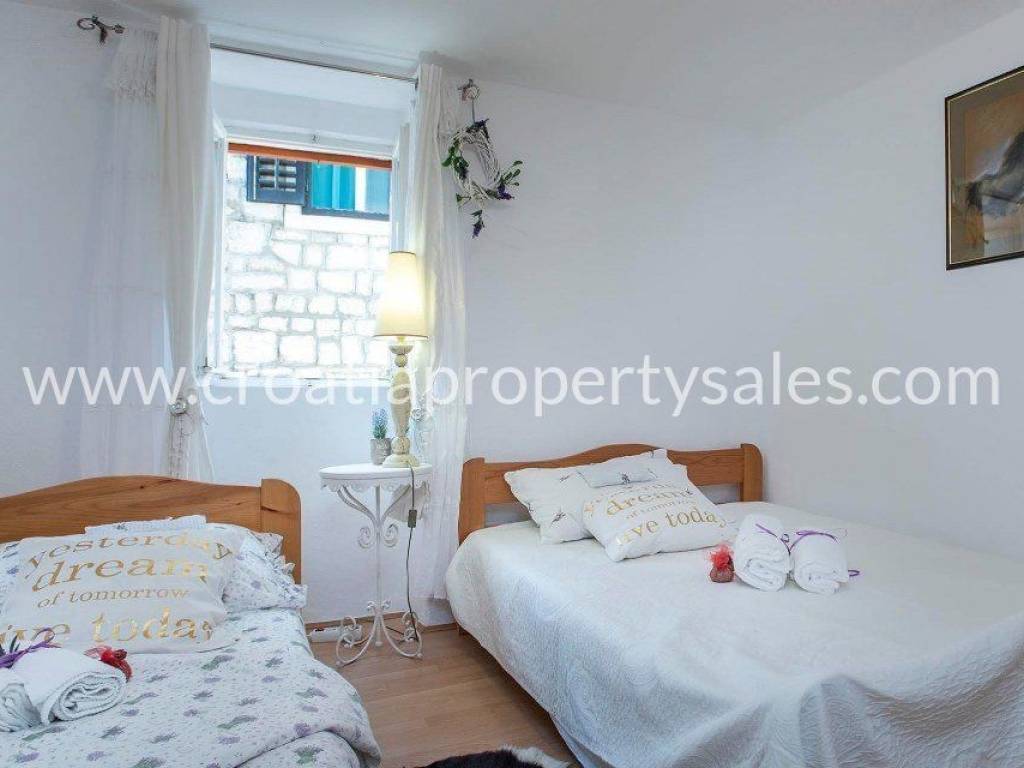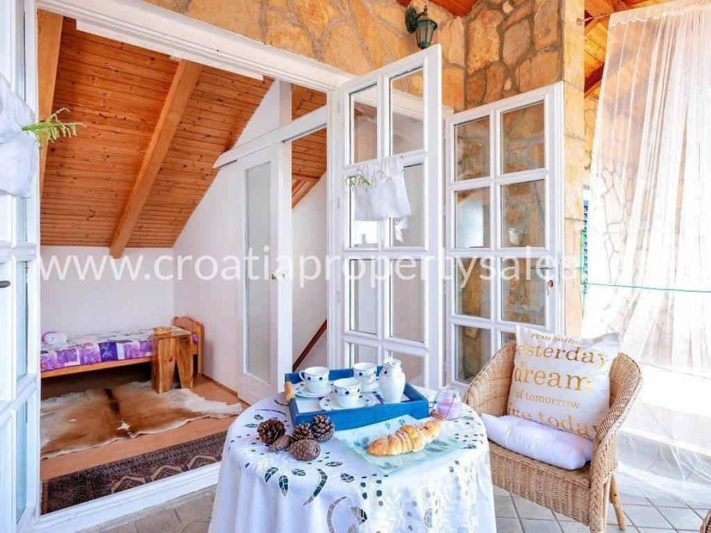 Semi-detached stone house in the city center, in a quiet location.The house consists of three floors plus the attic. Each floor has 22 m2. Renovated 7 years ago.On the ground floor there is a kitchen and a dining room, and wooden stairs lead to the upper floor, where there is one bedroom and a bathroom.There is another bedroom on the second floor, and internal wooden stairs lead to the attic, where there is one bedroom and a nice sunny terrace.The house is located in the city center, everything is nearby, restaurants, cafes, shops, and the beach is only a few minutes' walk away.The house is in excellent condition, ready for a new owner. It has two AC units.