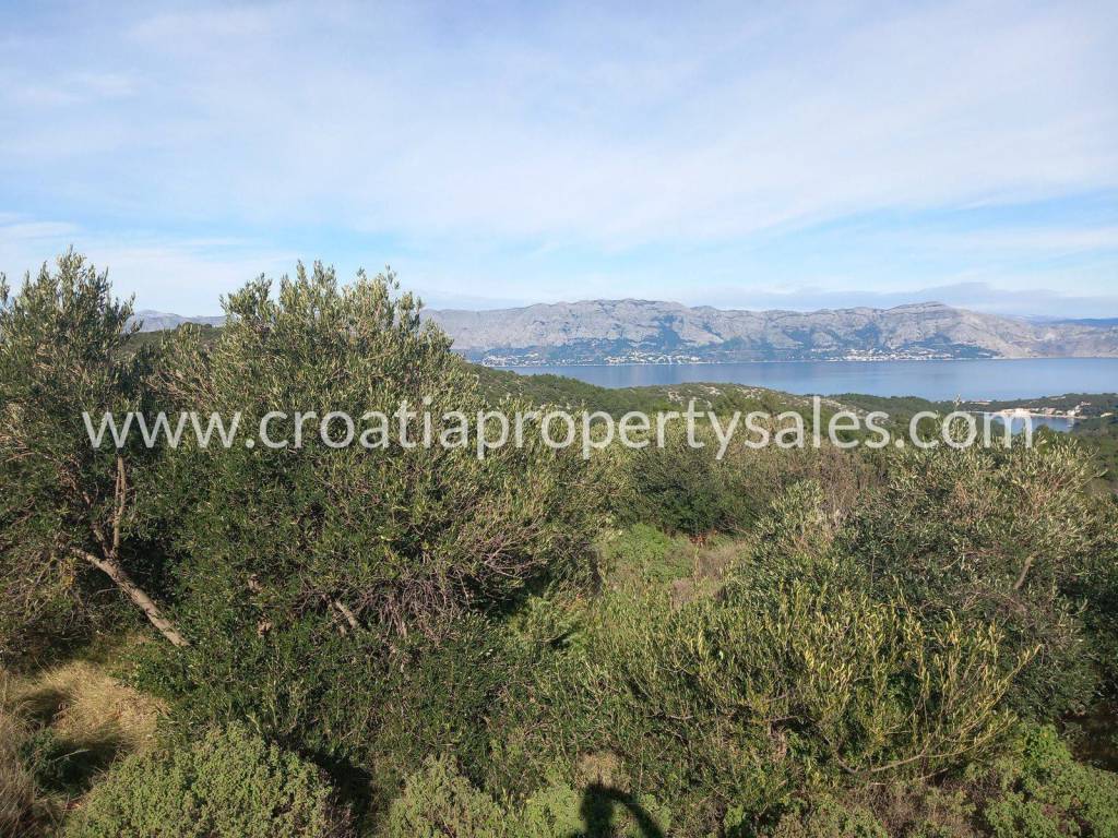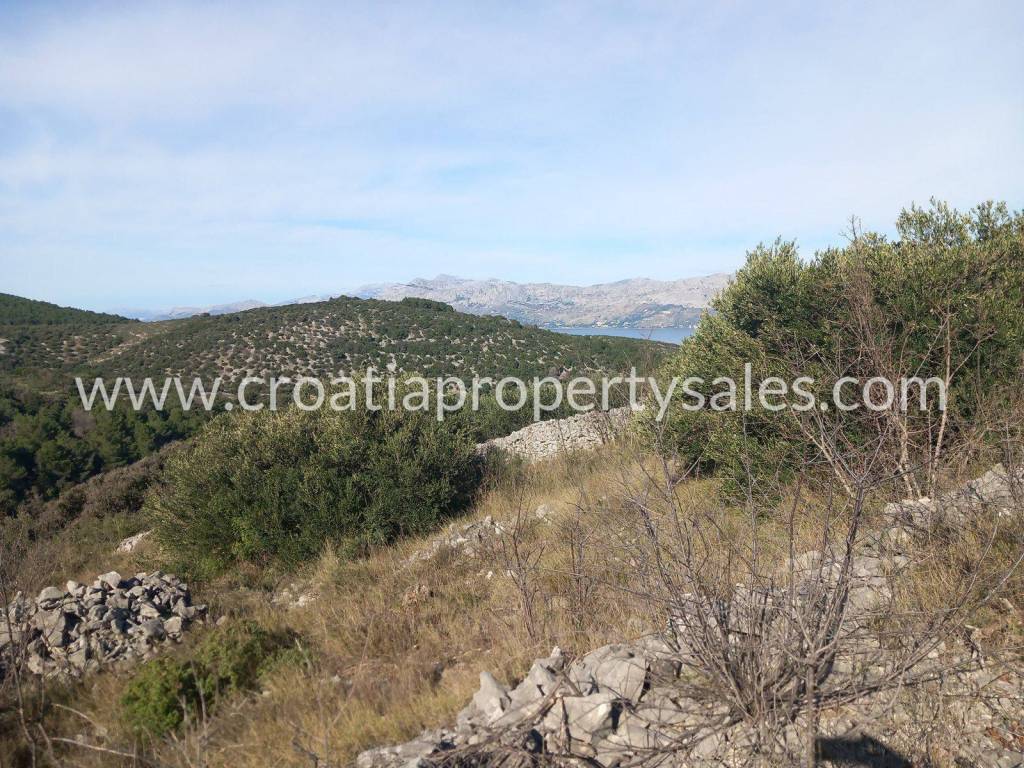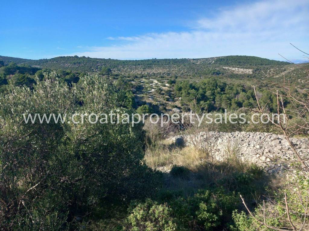 Poljoprivredno zemljište s predivnim pogledom na more.Zemljište je veliki maslinik koji je obrastao borovom šumom.Oko 130 stabala masline. Površine je 24.660 m2. Sredina parcele je plodna udolina, a sa strane su padine sa spektakularnim pogledom na more. Na zemljištu se nalazi mala kamena kućica. Prilaz je osiguran solidnim asfaltnim i makadamskim putem.Do mora se vozilom dolazi za pet minuta.Nekretnina pruža privatnost, ugođaj mira u prirodi.S obzirom na veličinu parcele i velik broj stabala maslina, moguće ishođenje dozvole za gradnju objekta.