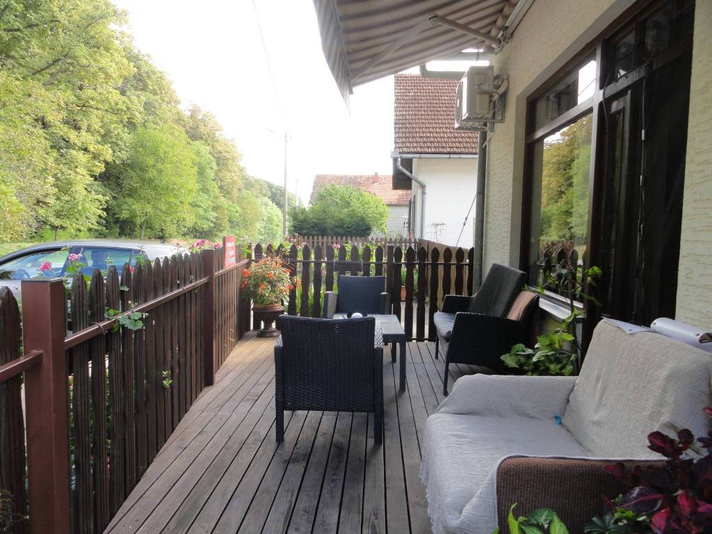 Kuća u Čojlugu, mjesto nedaleko od Orahovice u neposrednoj blizini parka prirode Papuk, okružena čistom prirodom, čistim zrakom i vodom, velikog potencijala obzirom da ima svu dokumentaciju za poslovnu zgradu predviđenu za poslovanje poljoprivredne ljekarne i skladišnog prostora. Trenutno je u funkciji stambenog prostora kojeg čine, dnevna soba. kuhinja, blagovaonica sa izlazom na terasu, dvije spavaće sobe, zasebni toalet i kupaonica sa tuš kabinom, te ostave i hodnika. Garaža i alatnica su veličine 75 m2 tlocrtne površine. Objekt se nalazi na parceli 530 m2 ali ponudu čine još četiri katastarske čestice tako da je fronta do ulice 37 m a ukupna površina zajedno sa oranicom čini 7712 m2. Na parceli do kuće moguća je i izgradnja radionice za održavanje i servisiranje vozila obzirom da je već izgrađen servisni kanal. Kuća se prodaje zajedno sa namještajem koji je nov i u dobrom stanju. Od priključaka ima gradsku vodu i struju plus bunar. Vlasništvo čisto, tereta nema.