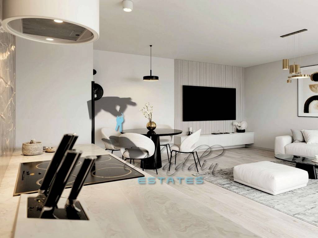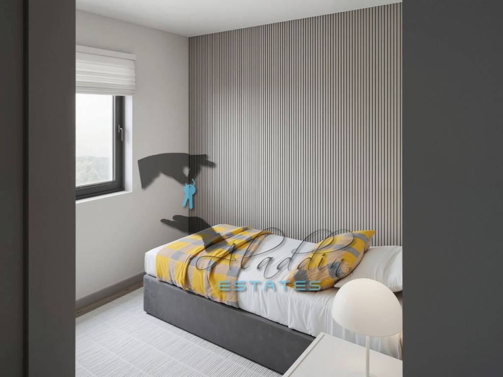 Están disponibles plazas de garaje y de aparcamiento exterior opcionales que se pagan adicionalmente (30.000 € y 10.000 € respectivamente). El apartamento se construye con los más altos estándares y está excelentemente equipado, incluyendo aire acondicionado en cada habitación, excelentes carpinterías de PVC con triple acristalamiento, persianas eléctricas y mosquiteras en todas las ventanas y puertas del balcón, suelos de parquet de calidad en todas las habitaciones y azulejos cerámicos modernos en las demás estancias, baño magníficamente equipado junto con radiador toallero, video portero, conexiones modernas para TV e internet en cada habitación, aislamiento hidro y térmico de primera clase (lana de roca), puerta de entrada antirrobo y cortafuegos, puerta de garaje con apertura a distancia e instalaciones para sistema de videovigilancia. También se prepararán las instalaciones para la conexión a la red de alcantarillado que está en fase de instalación.