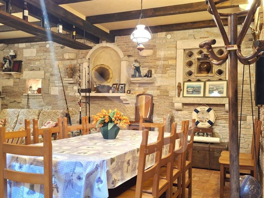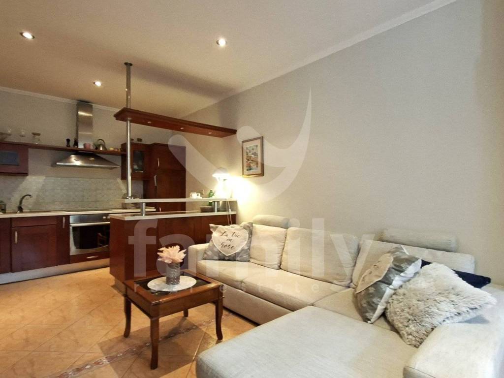 This beautiful apartment of 110 m2 on two floors on the ground floor of a residential building is located in Rovinj, not far from the sea. The apartment consists of an entrance area that leads to the living room that is connected to a high-quality kitchen that contains all the necessary kitchen appliances. There is also one comfortable bedroom and a bathroom as well as a larger room that is currently used as a storage room. Internal stairs lead down to the basement from which a beautiful, spacious tavern has been made. The apartment has PVC joinery, the floors are tiled, while heating and cooling are regulated by three air conditioners and a wood-burning fireplace. In front of the apartment there is a comfortable terrace.