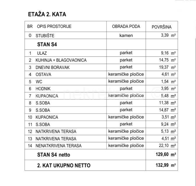 PENTHOUSE NEW CONSTRUCTION KAŠTEL NOVI Ideal for family and investment For sale is an attractive penthouse apartment in a new building, located on the second and also the last floor of a small residential building, in a quiet street between two roads in Kaštel Novi. The move-in is scheduled for the end of 2026, and the property represents an excellent opportunity for a quality family life or a secure investment in one of the most sought-after tourist areas of Kaštel. Location Sea and beaches: 700 m well-maintained beaches and promenades School: 450 m Shops and bus stations: 500 m Split Airport: 2.5 km ideal for tourism and travel Trogir: 5 km | Split: 12 km close to UNESCO cities All amenities needed for everyday life are in the immediate vicinity Apartment description The penthouse consists of: -entrance hall -three bedrooms, two of which have access to the terrace, and one has its own bathroom -additional bathroom and separate toilet -storage -spacious kitchen, dining room and living room with access to the terrace -terrace with an incredible view of the Kaštela Bay. Additionally The price includes two covered parking spaces, with the possibility of closing and converting into a garage. Advantages of the property quiet and safe location ideal for a family close to the sea, beaches and promenade excellent transport connections (airport, Split, Trogir) exceptional potential for tourist rental and long-term investment Kaštela is a place that combines peace, nature and excellent connections with urban centers.
