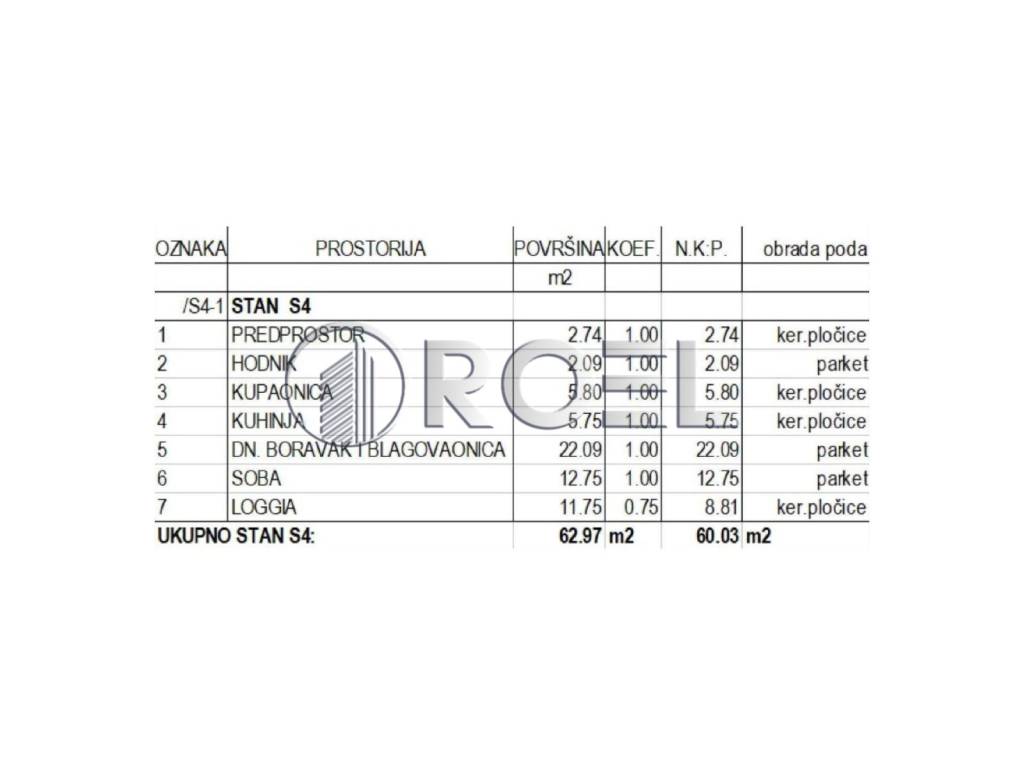 Two-bedroom apartment on the first floor of a new building with an elevator in the center of Zaprešić, NKP 60.03 m2. The building has three floors and there are a total of 34 apartments in the building. It consists of an entrance, a living room with a kitchen and a dining room with access to a loggia and a garden, a bedroom and a bathroom with a toilet. The apartment is oriented to the southwest. An identical apartment is also available on the second floor. The apartments in the building will be equipped to high standards, aluminum joinery, electrically adjustable aluminum blinds, three-layer glass, the first glass of which is stopsol (reflective colored glass that reflects the sun's rays). The heating and cooling system is the latest and highest quality variant of heat pumps, which, with additional thermal insulation from rock wool (15 cm), result in savings of up to 70% compared to a classic heating system. It is possible to buy a garage space with the apartment, but it is not a requirement.