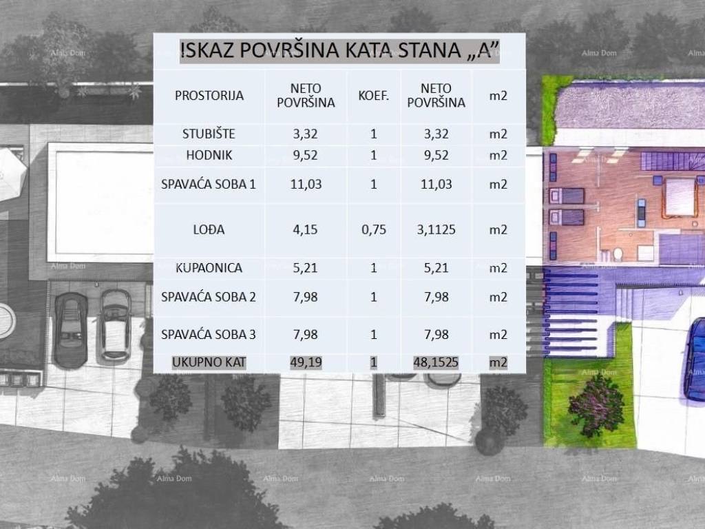 A new modern semi-detached house is for sale, located in a quiet neighborhood near Poreč and the sea. This attractive property offers the perfect blend of contemporary design, energy efficiency, and practical layout.House area: 100.17 m²Ground floor: kitchen, bathroom, living room and dining area, storage, staircase.1st floor: staircase, hallway, 3 bedrooms, bathroom, balcony.Green area: approx. 120 m² of private garden behind the houseParking: 2 private parking spacesElectric vehicle charging: includedEnergy systems:• High-quality PVC joinery• Facade with 10 cm Styrofoam insulation• Underfloor heating (electric) in the living area• Air conditioning for heating and cooling• Norwegian radiators in the bathroomsLocation ideal for peaceful living, family life, or tourist rental – close to the sea, Poreč, and all essential amenities.For more information, floor plans, or to arrange a viewing, please feel free to contact us:Azra Valjevac +385 91 611 5706 +385 98 420 885 azra@almadominvest.com