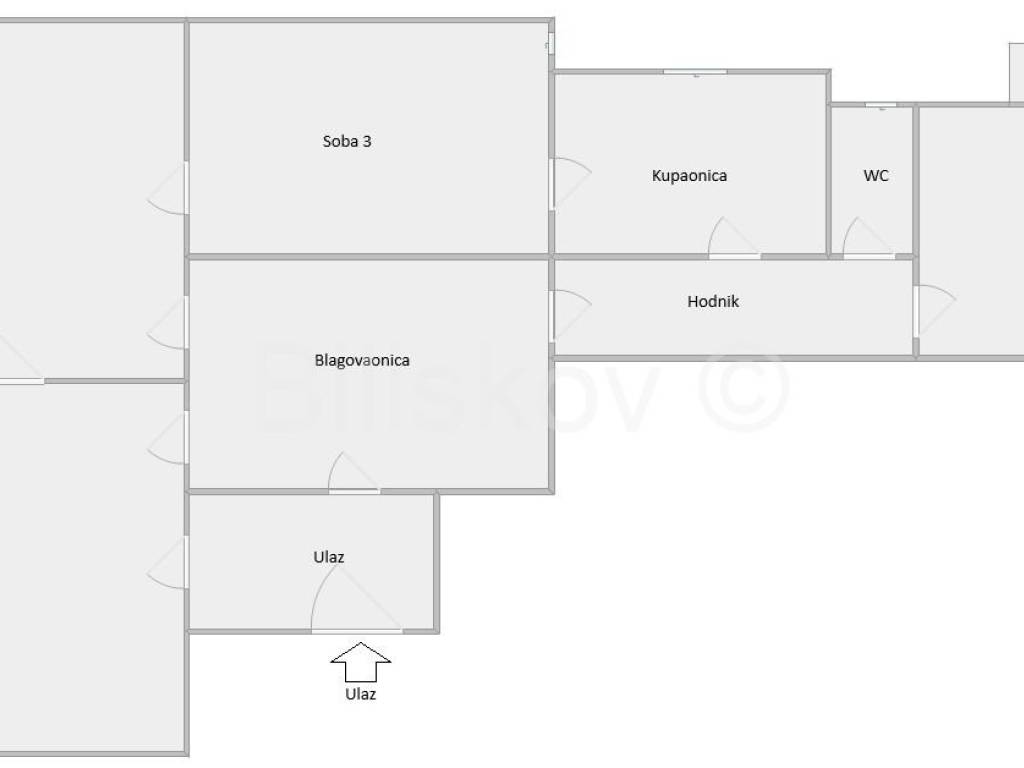 The apartment consists of two large rooms with access to a balcony, a smaller bedroom, a kitchen with pantry and access to a balcony, a maids room, a bathroom, a separate toilet, a dining room, a storage room near the entrance, and an entrance hall.