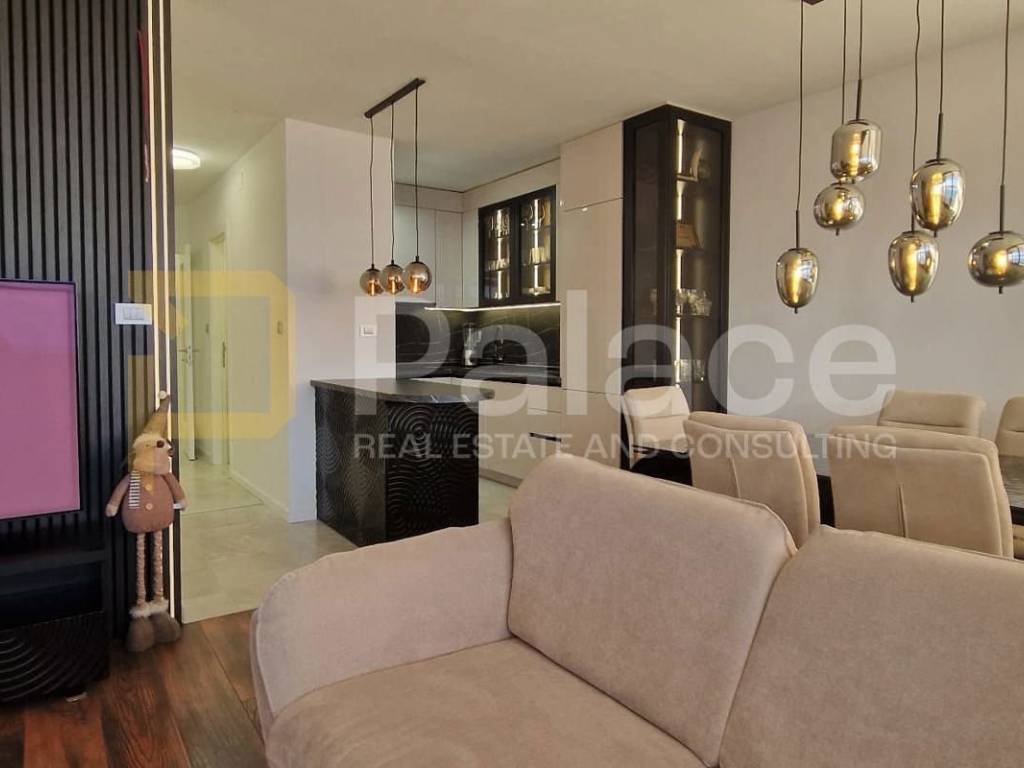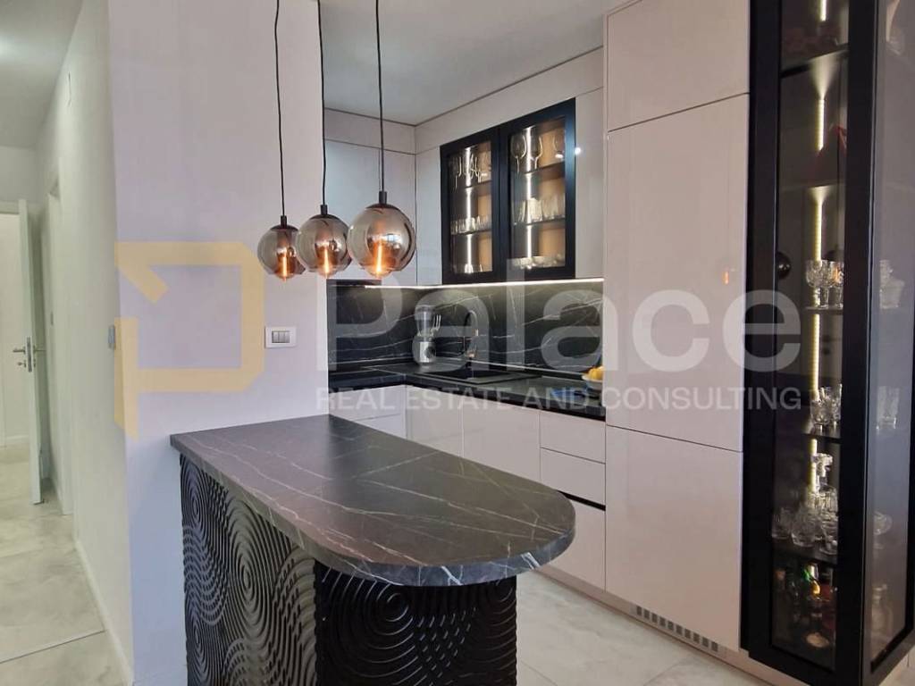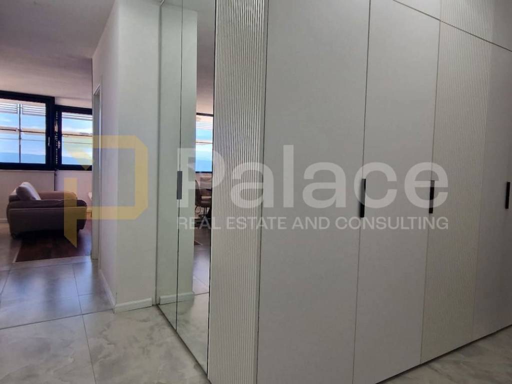 We are offering for sale a luxurious and comfortable three-bedroom apartment with a mesmerizing view of the sea and islands. The apartment is located on the 9th floor of a building in Trstenik and was completely renovated a year ago. The total area of the apartment is 89 m², consisting of an open space living room, kitchen, and dining area that leads to a spacious balcony overlooking the sea. The apartment has three bedrooms, two bathrooms, a storage room, and a hallway. The apartment is oriented north-south, providing plenty of natural light and sunshine.