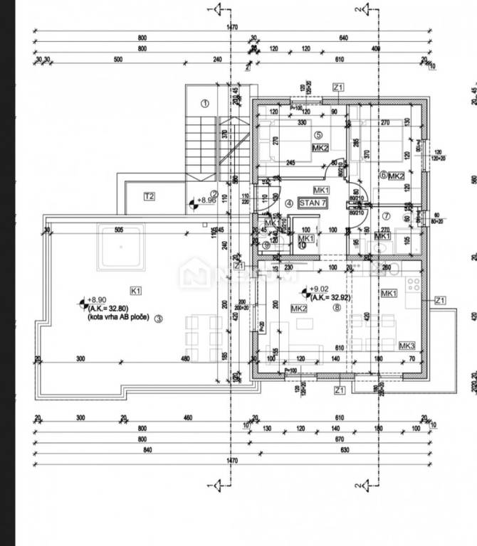 For sale is a two-bedroom penthouse on the third floor of a residential building in an excellent location in Seget Donji.