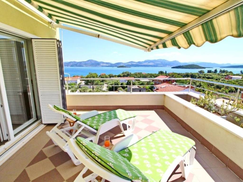 The house is spread over 3 floors and consists of three separate residential units. On the ground floor there is one studio apartment, first floor consists of a spacious 4bedroom apartment and on the 2nd floor there is a 2bedroom apartment. From each floor doors lead onto terraces and balconies with amazing views of Drače, sea and Pelješac bridge.