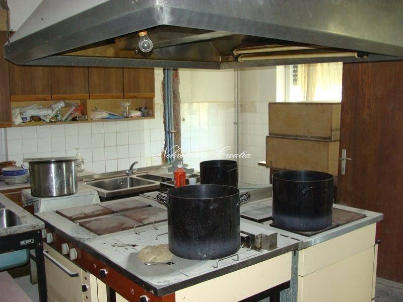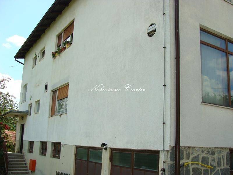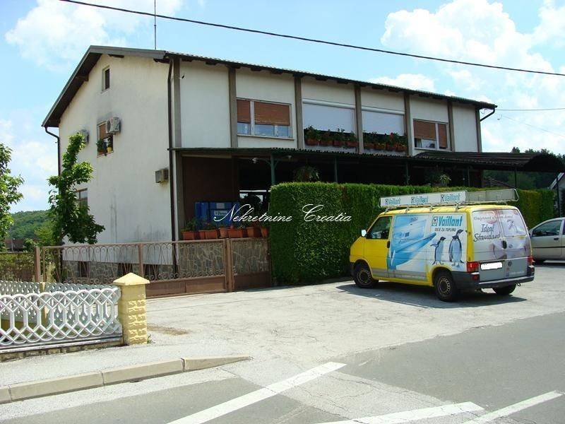 Zgrada tlocrtne površine 216 m2 na četiri etaže, NETO korisne površine 372 m2 (prizemlje i kat), sa velikim suterenskim prostorom (ispod cijele zgrade) i potkrovljem.Ukupna površina zemljišta 863 m2; okućnica asfalitirana, pruža dodatan parkirni prostor.S obzirom  na neposrednu blizinu velike specijalne bolnice i relativno lošu povezanost do Klenovnika javnim prijevozom, nekretnina je idealna za restoran sa prenoćištem.Moguće obavljanje i drugih djelatnosti ili kombinacija: ugostiteljstvo/ trgovina, uredski ili stambeni prostor.na katu i suterenu i sl.Zgrada je u fazi adaptacije: nove instalacije vode i odvoda, uređenje sanitarnih čvorova i kupaonica kao i ugradnja PVC vanjske stolarije.Potpuna infrastruktura: struja, voda, kanalizacija, plin, telefon, internet.Grijanje na plinsko centralno grijanje (kotlovnica u podrumu) kao i na lož ulje. Na dvorištu ukopan spremnik lož ulja zapremine 11.000 litara.Krovni pokrov: plastificirani lim, poletvano i podaskano.U prizemlju objekta radovi na već opremljenoj, prostranoj kuhinji i središnjem prostoru sa pultom.SUTEREN:- garaža- kotlovnica- 5 prostorijaPRIZEMLJE (visina 3 m):- uredski prostor- kuhinja- skladište- sanitarni čvor za osoblje sa kupaonicom- ugostiteljski prostor sa pultom- sanitarni čvor (m/ž)- natkrivena terasa (12 X 5 m)KAT:- hodnik- kuhinja- dvije kupaonice sa WC-om- 7 (sedam) soba- balkonPOTKROVLJE:- moguće uređenje dodatanog prostora po potrebi.