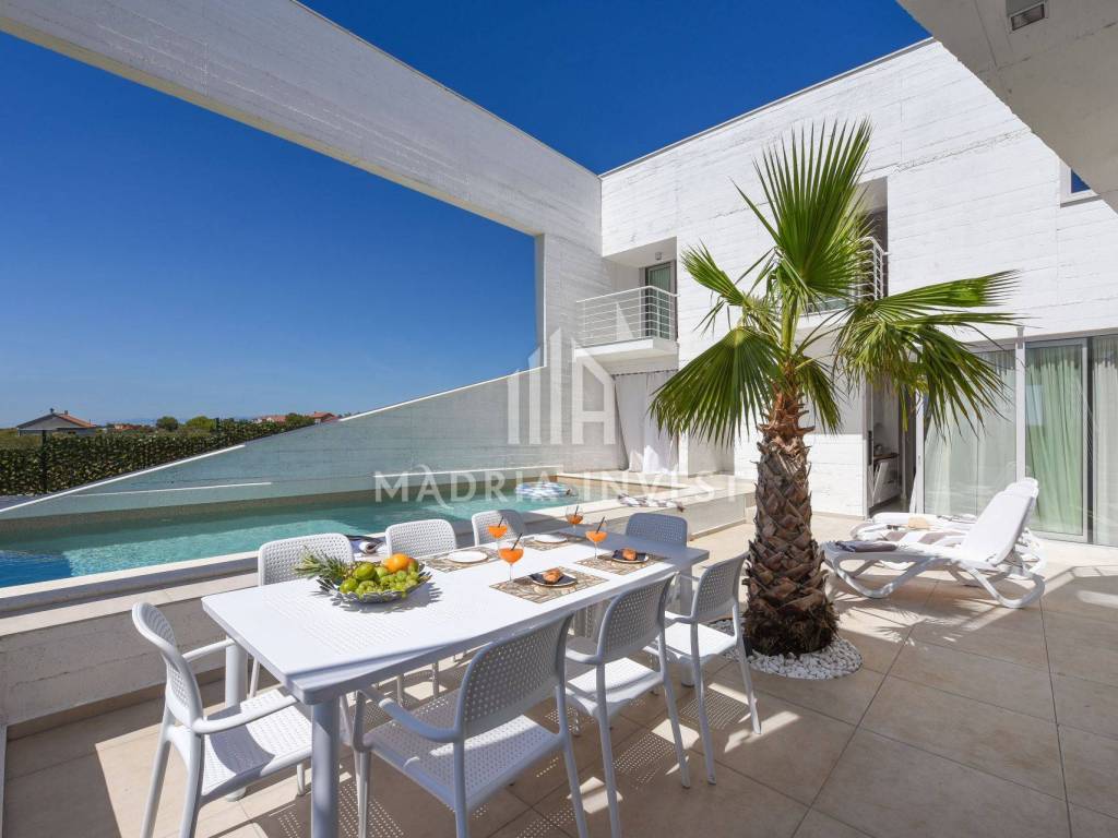 This unique modern luxury villa has found its place in a quiet little town near Zadar - Debeljak. It is located far from the daily bustle and traffic of big cities. From all sides of the villa there is a rich panoramic view of green areas, hills, then the sea and islands. This villa is the perfect choice for someone who wants to spend his life in a peaceful community of local residents with guaranteed privacy and peace of mind because the villa is located in a secluded location.