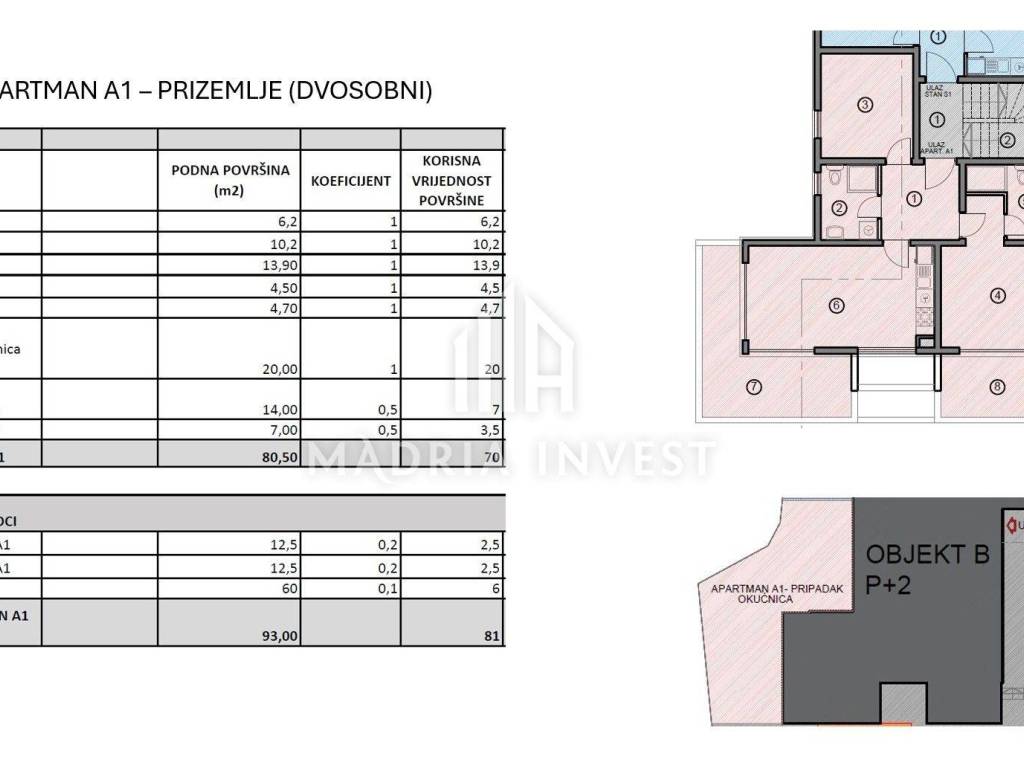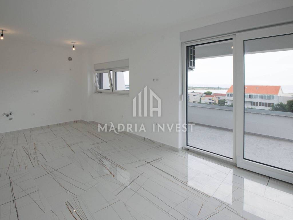 * APARTMENT WITH SEA VIEW, NOVALJA - NEW BUILDING!* We present two modern, newly built residential and commercial buildings with a total of 11 apartments/flats. High-quality construction, top-quality equipment, air conditioning in all rooms and a beautiful sea view make this project excellent for tourist rental or year-round living. It is located in a luxurious real estate environment, only 300m from the beach. Apartment A1 is located on the high ground floor. The property consists of: *hallway (6.20m2) *bedroom 1 (10.20 m2) *bedroom 2 (13.90 m2) *bathroom 1 (4.50m2) *bathroom 2 (4.70 m2) *kitchen, dining room, living room -open space concept with access to the terrace– (20 m2) *covered terrace 1 (14.00m2) *covered terrace 2 (7.00 m2) *garden (60 m2) *parking space PA1 (12.50m2) *parking space PA1 (12.50m2) Total net area = 81 m2 The floor plans of all two-bedroom apartments in this project are designed so that they can function as a whole with two bedrooms, 2 bathrooms, a large open-space living area, and two comfortable terraces. A great advantage is that all of the above can be conceptually adapted in such a way that the apartment can be made into two separate residential units. 1. Room 1 with bathroom and terrace (south-sea view) 2. One-bedroom apartment with bedroom, bathroom, kitchen, living room with access to the terrace (south-west - sea view) This option offers the potential buyer the opportunity to enjoy their own property, and also the opportunity to earn from tourist rental from the second residential unit. In this case, the buyer also has a guaranteed return on investment, given the high rental prices of apartments in this location in Novalja. Novalja is a tourist center and the central port of the island of Pag. Natural beauties, among which the beautiful and spacious sandy beaches in the vicinity of Novalja stand out, a pleasant Mediterranean climate, a rich cultural and historical heritage, a diverse cultural and artistic, entertainment and sports and recreational offer, local cuisine and excellent transport connections to the mainland make Novalja a very desirable and sought-after destination for living and vacation. NOTE: The buyer does not pay real estate tax!