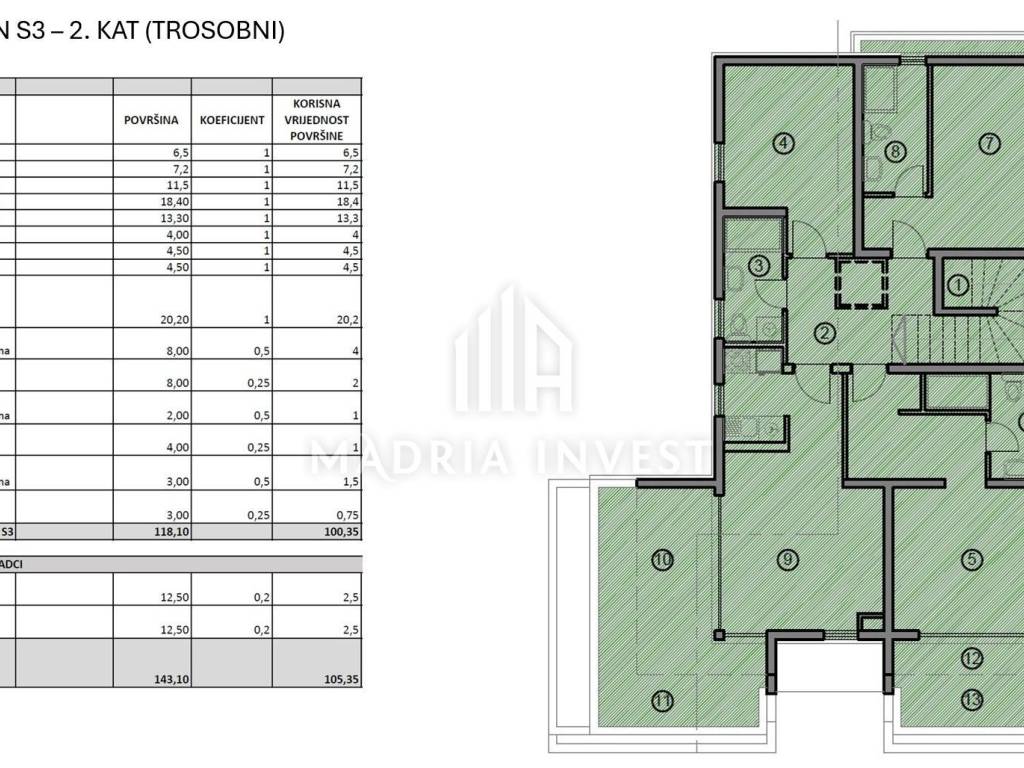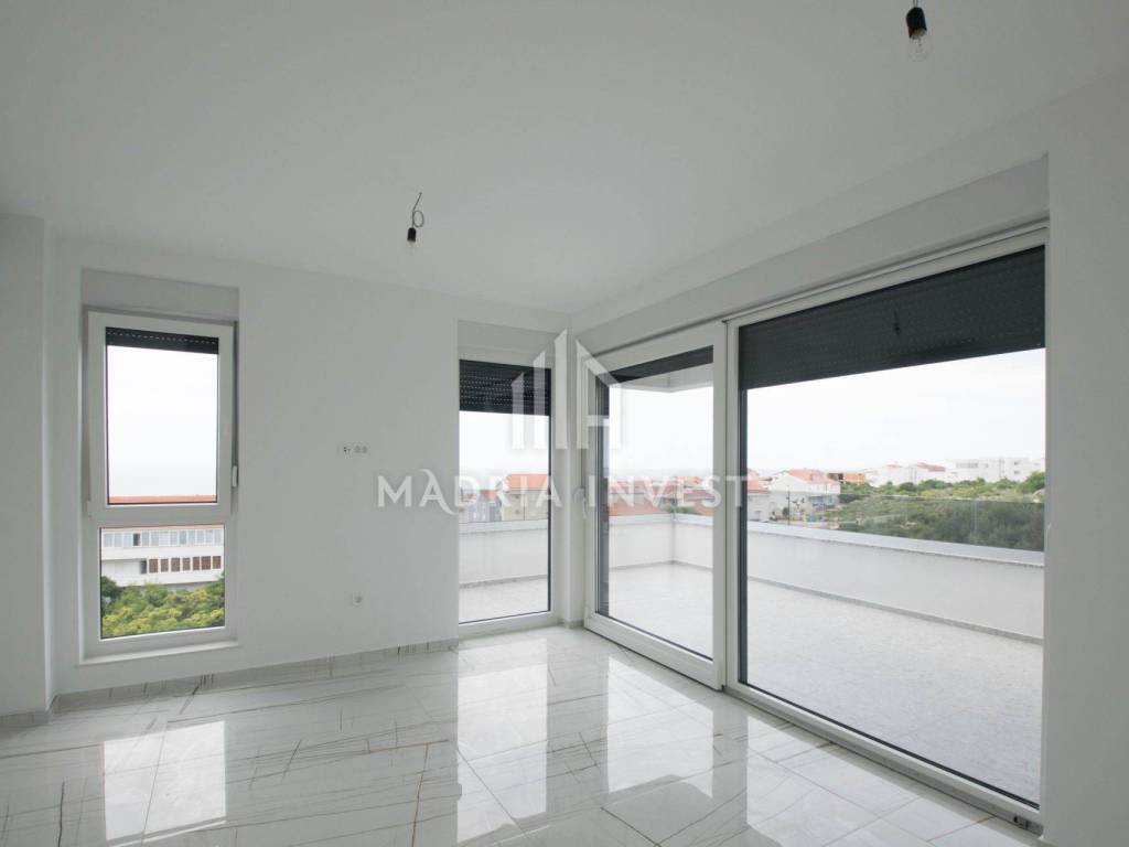 * APARTMENT WITH SEA VIEW, NOVALJA - NEW BUILDING!* We present two modern, newly built residential and commercial buildings with a total of 11 apartments/flats. High-quality construction, top-quality equipment, air conditioning in all rooms and a beautiful sea view make this project excellent for tourist rental or year-round residence. It is located in a luxurious real estate environment, only 300m from the beach. Apartment S3 is located on the second floor. The property consists of: *staircase (6.5m2) *hallway (7.20m2) *bedroom 1 (11.50 m2) *bedroom 2 (18.40 m2) *bedroom 3 (13.30 m2) *bathroom 1 (4 m2) *bathroom 2 (4.50 m2) *bathroom 3 (4.50 m2) *kitchen, dining room, living room -open space concept with access to the terrace– (20.20 m2) *covered terrace 1 (8.00m2) *covered terrace 2 (2.00 m2) *covered terrace 3 (3.00 m2) *uncovered terrace 1 (8.00 m2) *uncovered terrace 2 (4.00 m2) *uncovered terrace (3.00 m2) *parking space PS3 (12.50m2) *parking space PS3 (12.50m2) Total net area = 105 m2 The apartment marked S3 is the only one that extends over the entire floor of the building, which ensures complete privacy for the potential buyer. The floor plan is designed so that the apartment can function as a whole with three bedrooms, three bathrooms, a large open-space living area, and even three comfortable terraces. The apartment begins with an entrance hall that starts from the mezzanine, which additionally gives a feeling of spaciousness, privacy, and separation from the other apartments. The great advantage is that all of the above can be conceptually adapted in such a way that the apartment can be made into three separate residential units. 1. Room 1 with bathroom and terrace (east-sea view) 2. Room 2 with bathroom and terrace (south-sea view) 3. One-bedroom apartment with bedroom, bathroom, kitchen, living room with access to the terrace (south-west-sea view) This option offers the potential buyer the opportunity to enjoy their own property, and also the opportunity to earn from tourist rental from the remaining two residential units. In this case, the buyer also has a guaranteed return on investment, given the high rental prices of apartments in this location, in Novalja. Novalja is a tourist center and the central port of the island of Pag. Natural beauties, among which the beautiful and spacious sandy beaches in the vicinity of Novalja stand out, a pleasant Mediterranean climate, a rich cultural and historical heritage, a diverse cultural and artistic, entertainment and sports and recreational offer, local cuisine and excellent transport connections to the mainland make Novalja a very desirable and sought-after destination for living and vacation. NOTE: The buyer does not pay real estate tax!