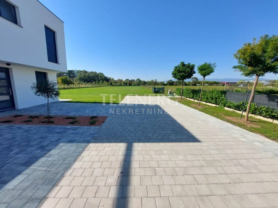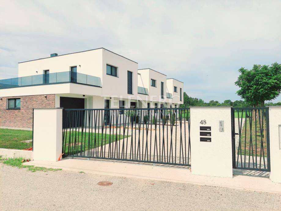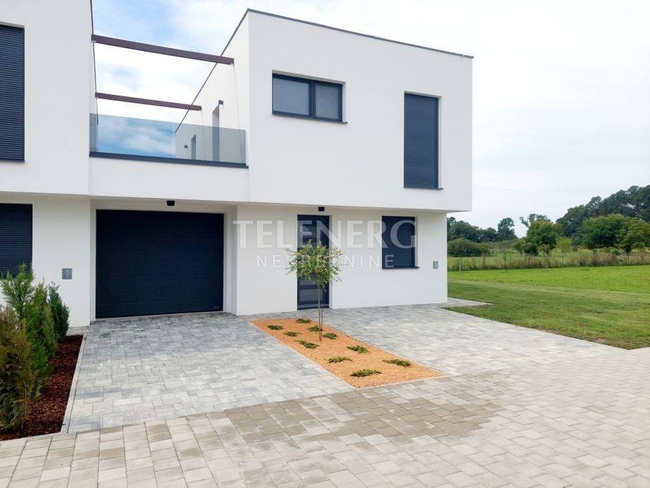 The apartment has 3 bedrooms on the first floor - one for parents, 2 children's rooms, and 2 bathrooms. On the ground floor there is a living room with dining room, kitchen, pantry, 2 guest toilets. There is a 30 m2 terrace on the first floor, and a 15 m2 covered loggia on the ground floor. The area of the garage is approx. 30 m2. The apartment has a garden of approx. 250 m2, and 2 outdoor parking spaces.